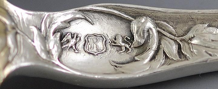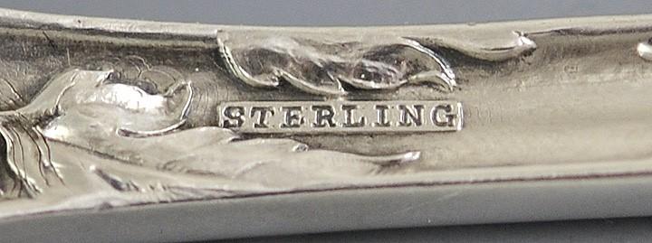 The reverse of the stem is stamped 'sterling' and with the hallmark for Reed & Barton of Taunton, Massachusetts. Further up the stem is a patent date of May 22 1900.