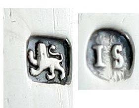The tongs are hallmarked with the lion passant for sterling silver and a maker’s mark of IS for John Sidaway.