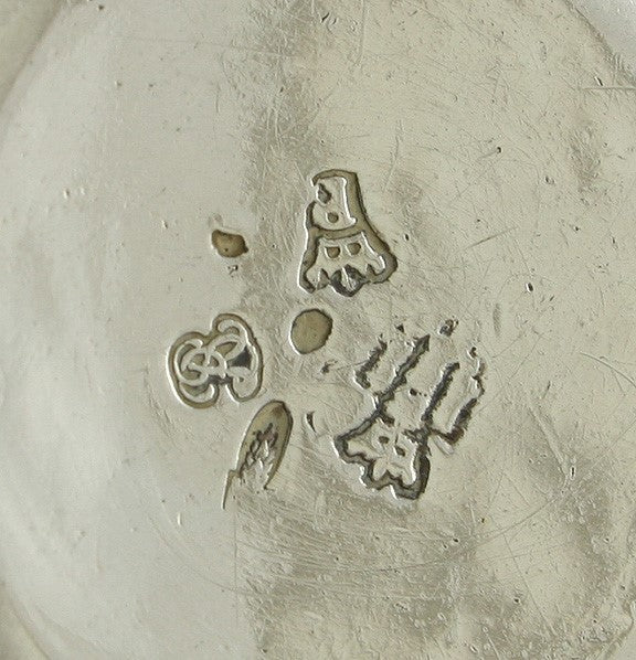 The underside is marked with the intertwined RS letters for the French provincial mark for Reims used from 1774-1780. A kind eBayer has informed us that the exact date is 1777. This piece is definitely 18th-century, approximately 230 to 260 years old. The silver purity is at least 925 sterling purity.
