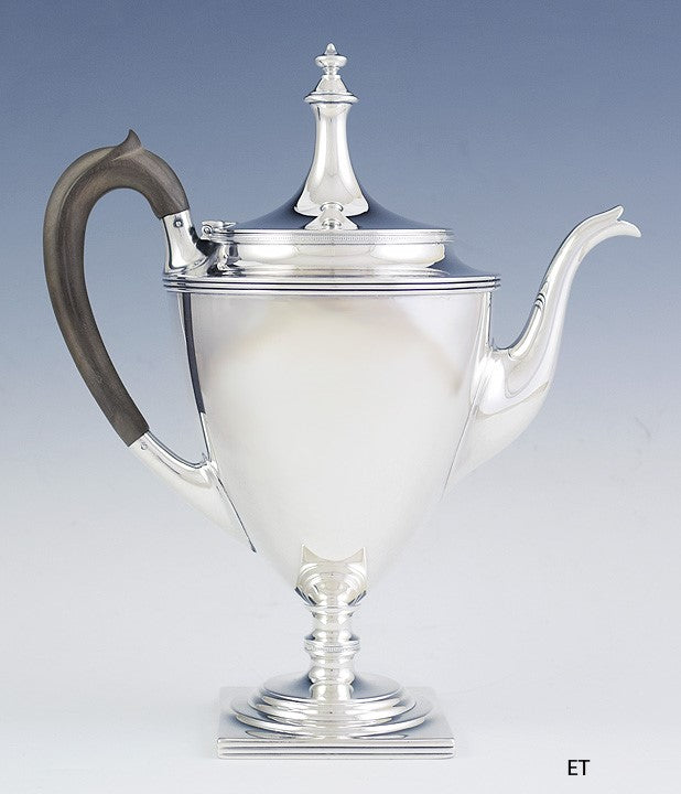 Presented is a fabulous Gorham sterling silver coffee or teapot. This piece dates to circa 1900-1910. The teapot is done in the style of the New York/Philadelphia silversmiths, as adapted from a much older English style. The interior of the pot is spotlessly clean, while the exterior is polished to a bright mirror finish, ready for use or display.