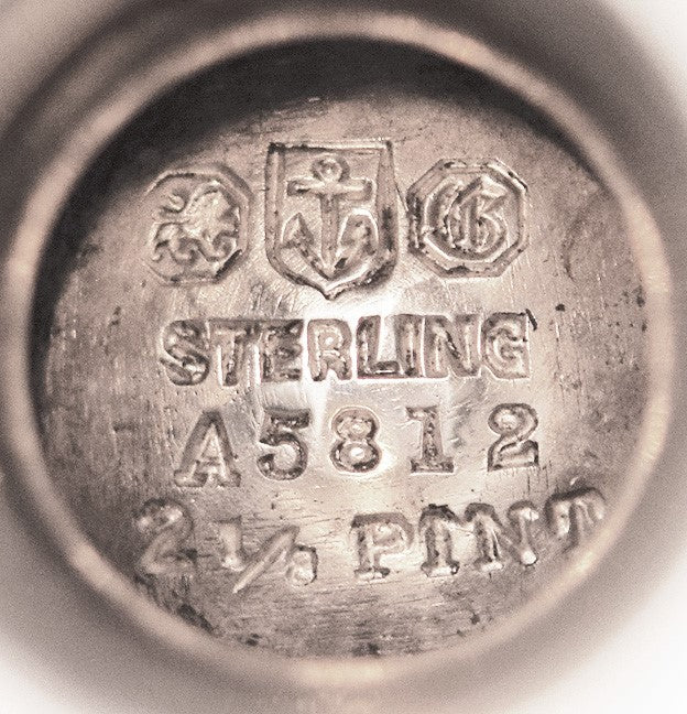 The underside of the piece is stamped 'sterling' and with the maker's mark for Gorham, as well as the number A5812 and the capacity of 2 1/8 pints.