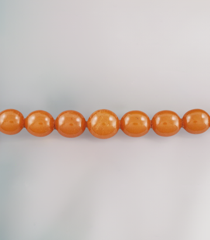 unsure of the origin. The necklace consists of graduated round amber beads,