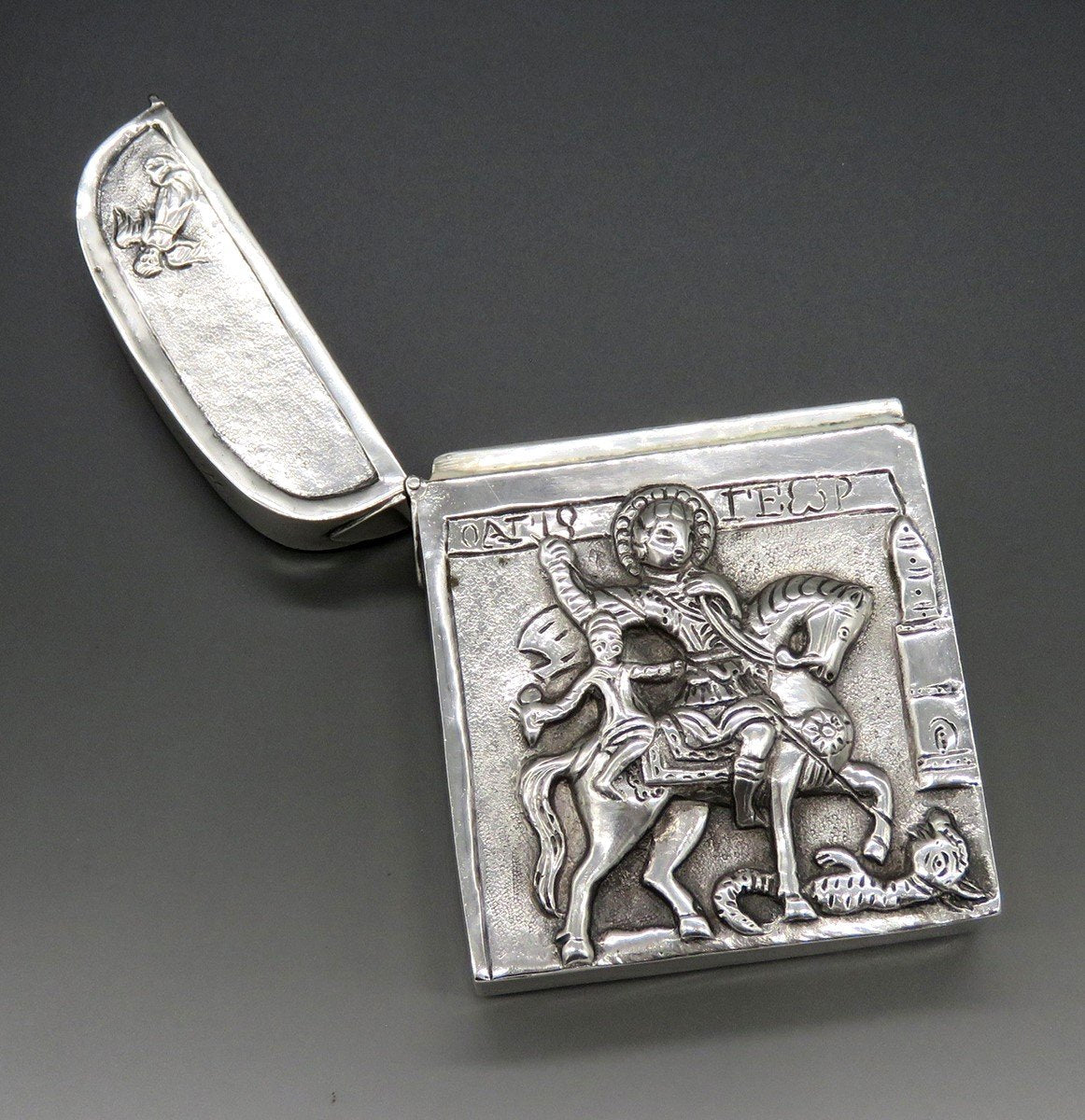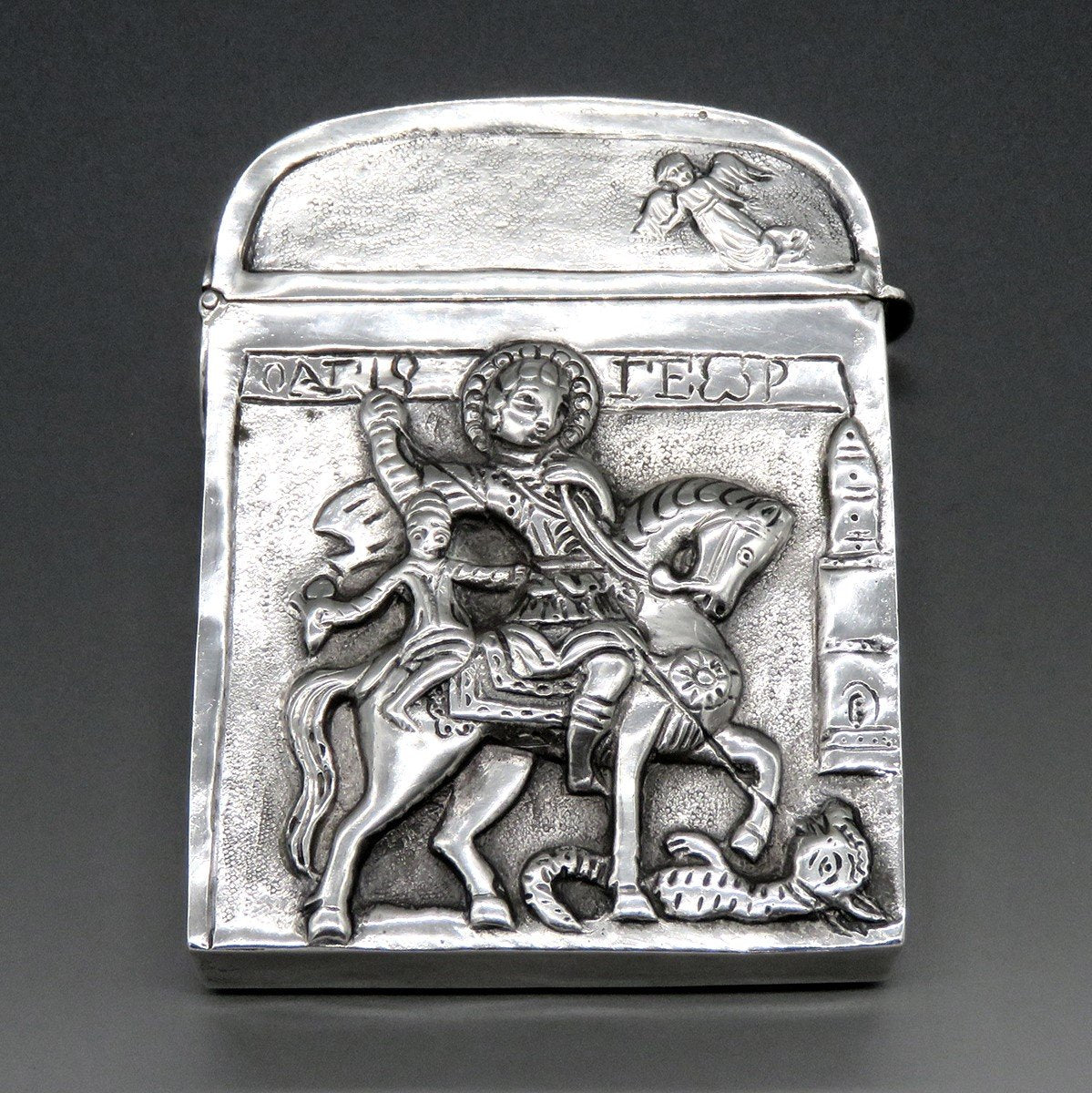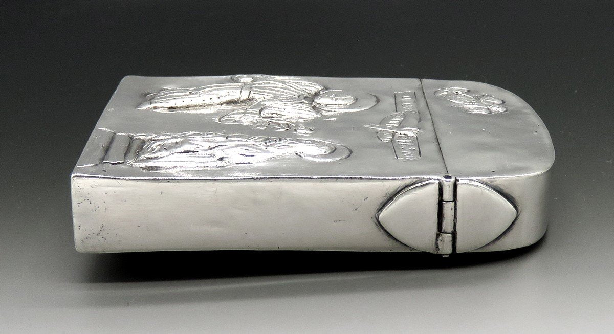 Antique Hanau Germany Silver Saint George Dragon Angels Cigarette Case