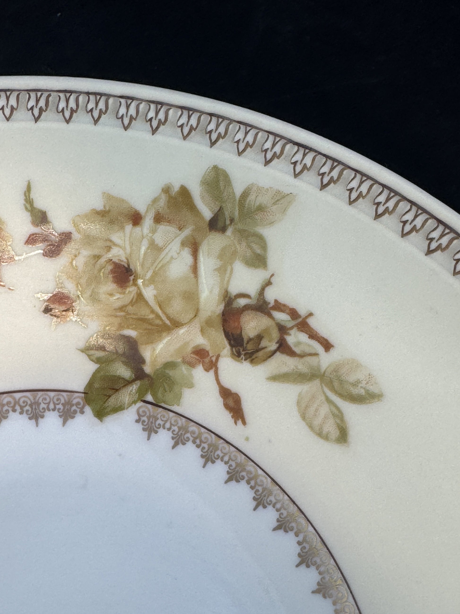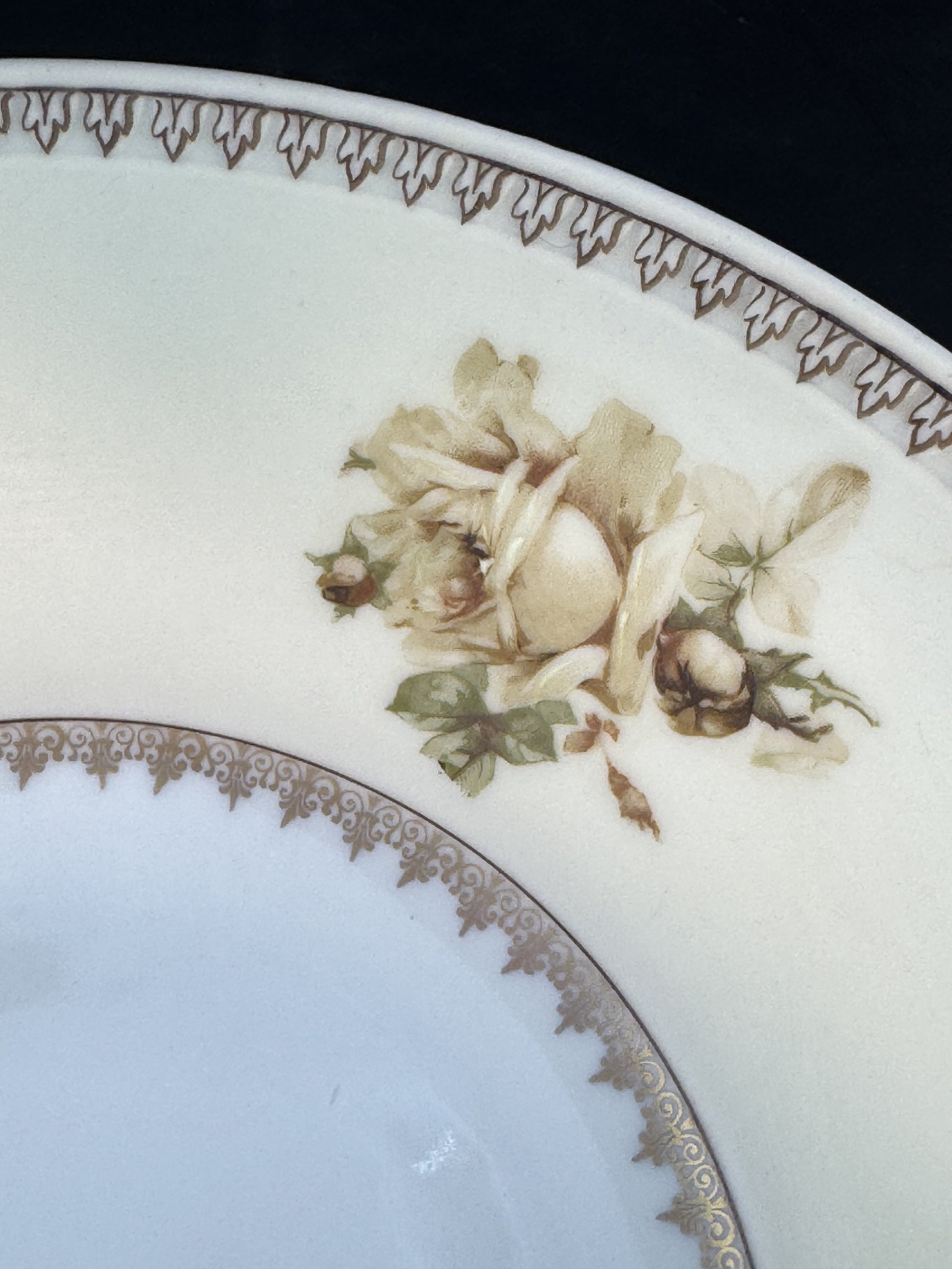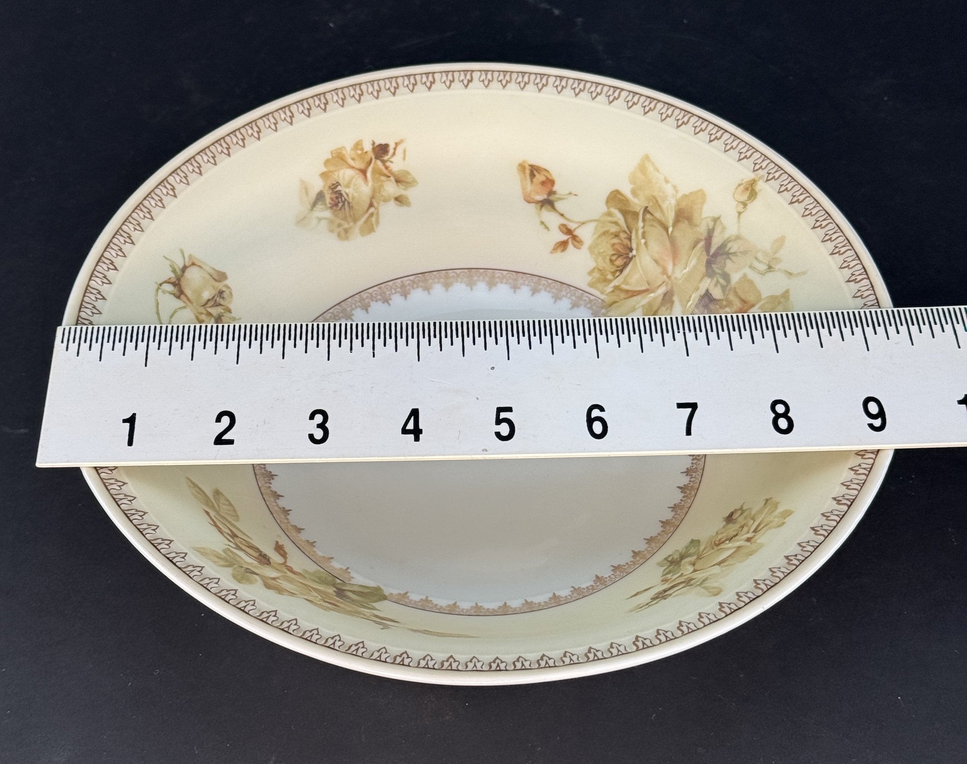 Presented is a fine quality Herman Ohme, Silesia porcelain bowl, dating to around the first quarter of the 1900s. This piece is made in the Old Ivory line, and features lovely decoration of roses and leaves against a mellow ivory color background. Please note, we have many additional pieces in this pattern, which you can find by searching “Old Ivory” in our store.