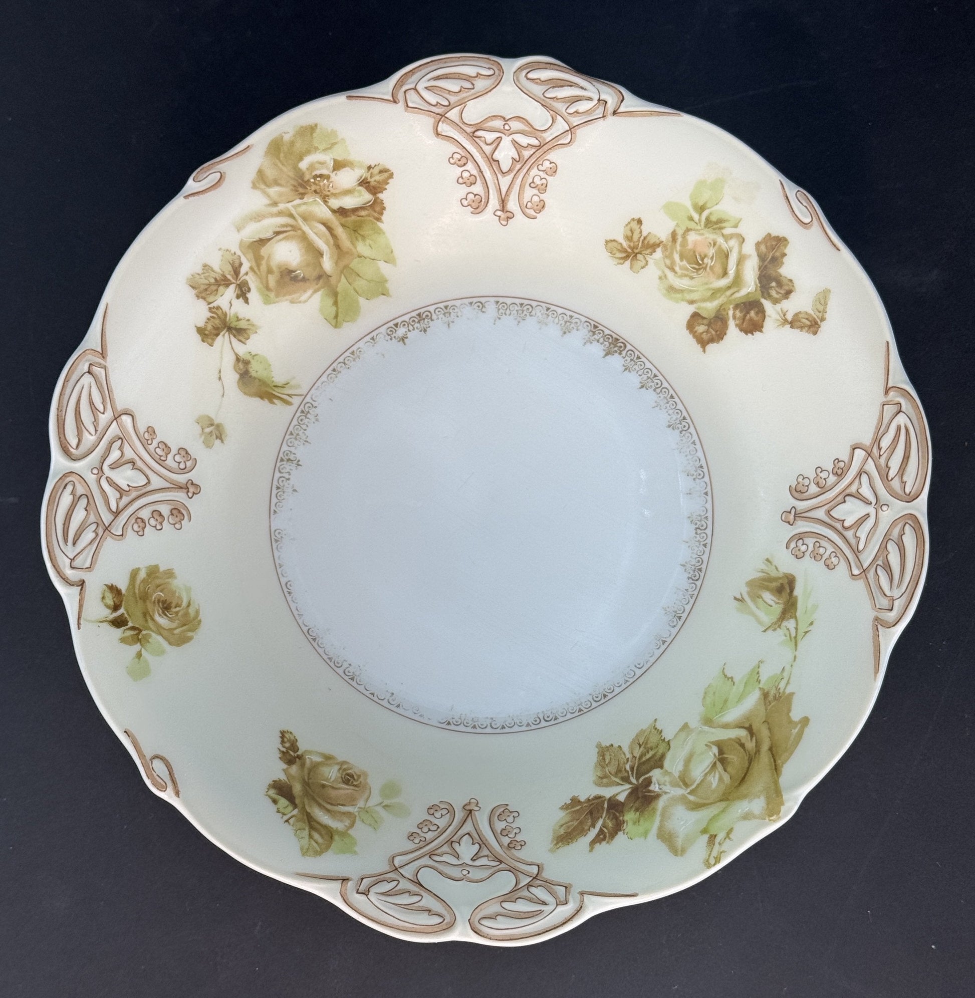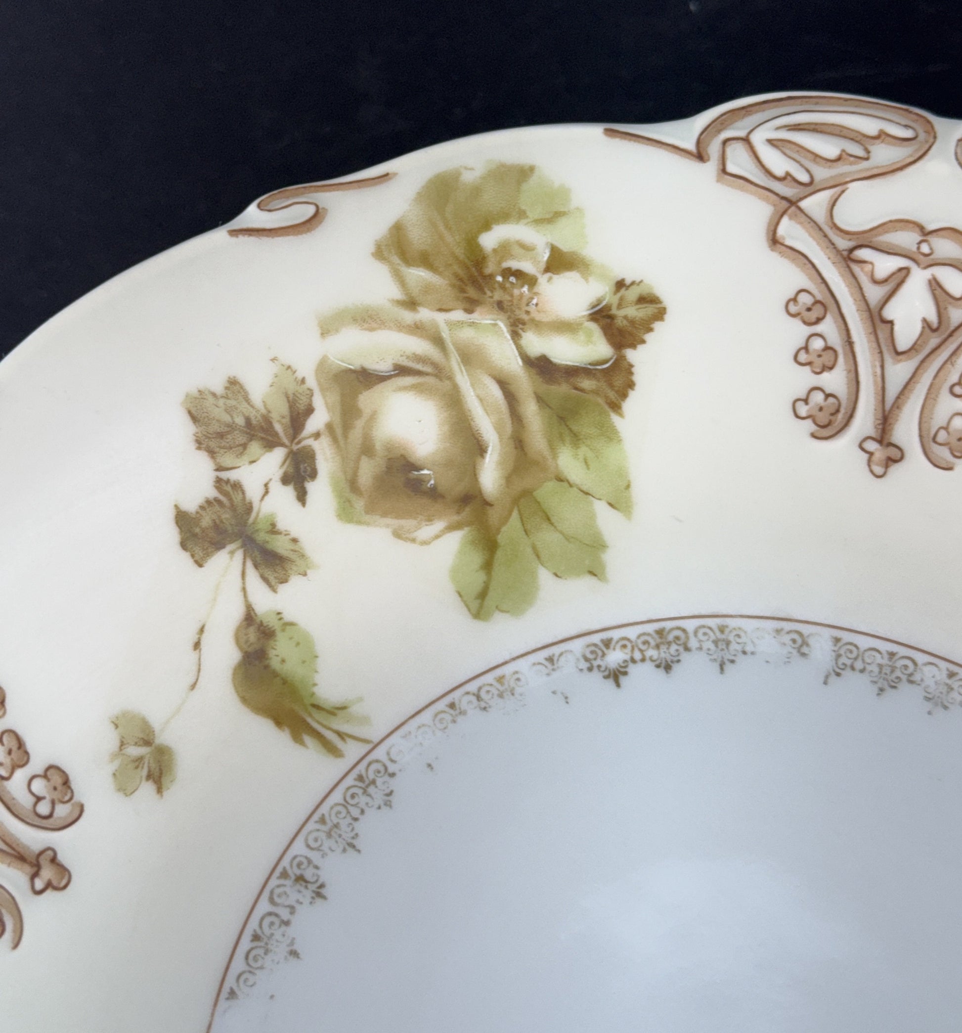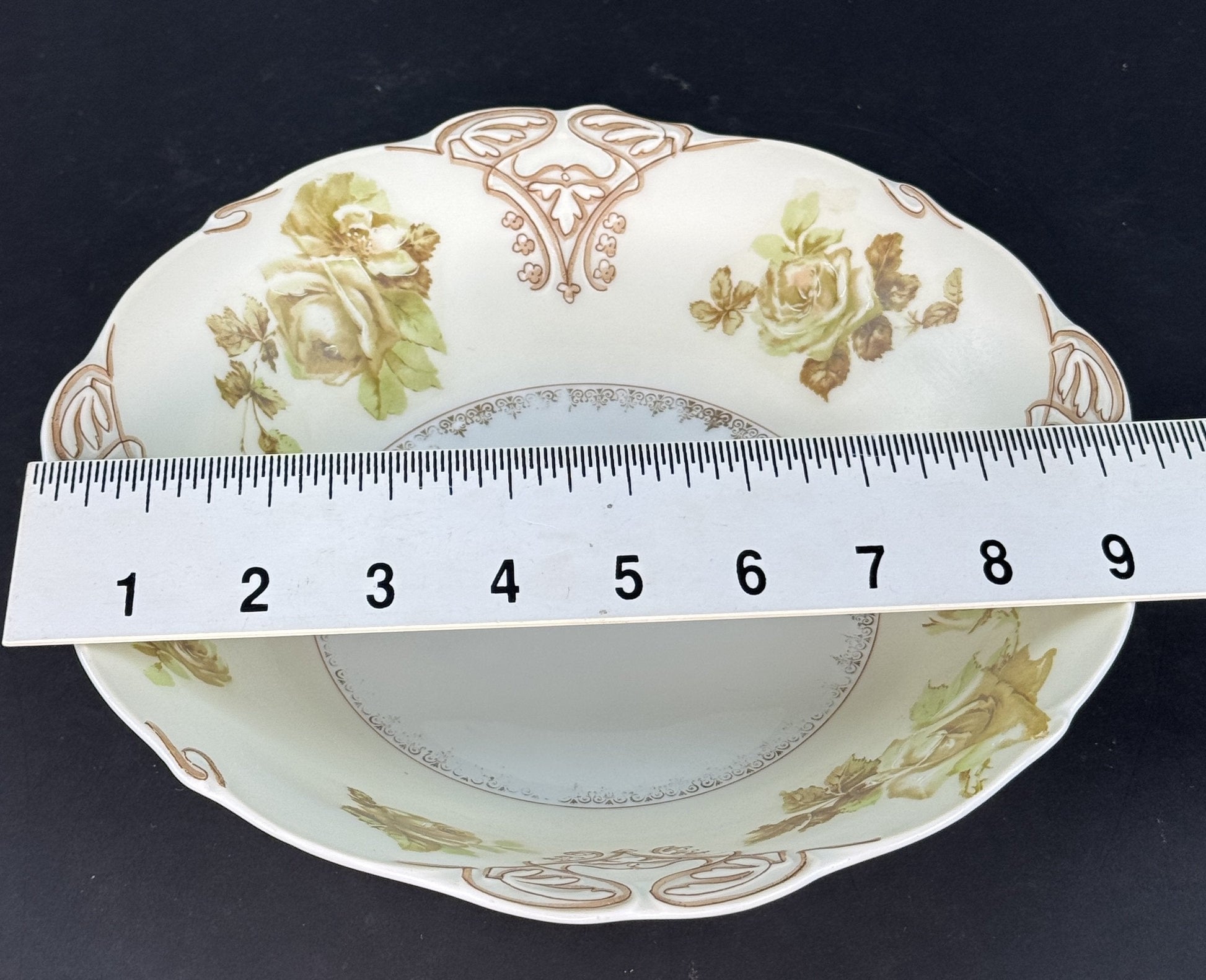 Presented is a fine quality Herman Ohme, Silesia porcelain bowl, dating to around the first quarter of the 1900s. This piece is made in the Old Ivory line, and features lovely decoration of roses and leaves against a mellow ivory color background. Please note, we have many additional pieces in this pattern, which you can find by searching “Old Ivory” in our store.