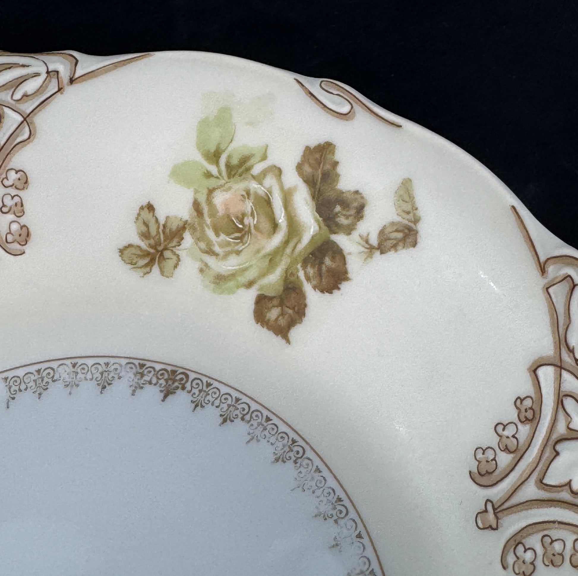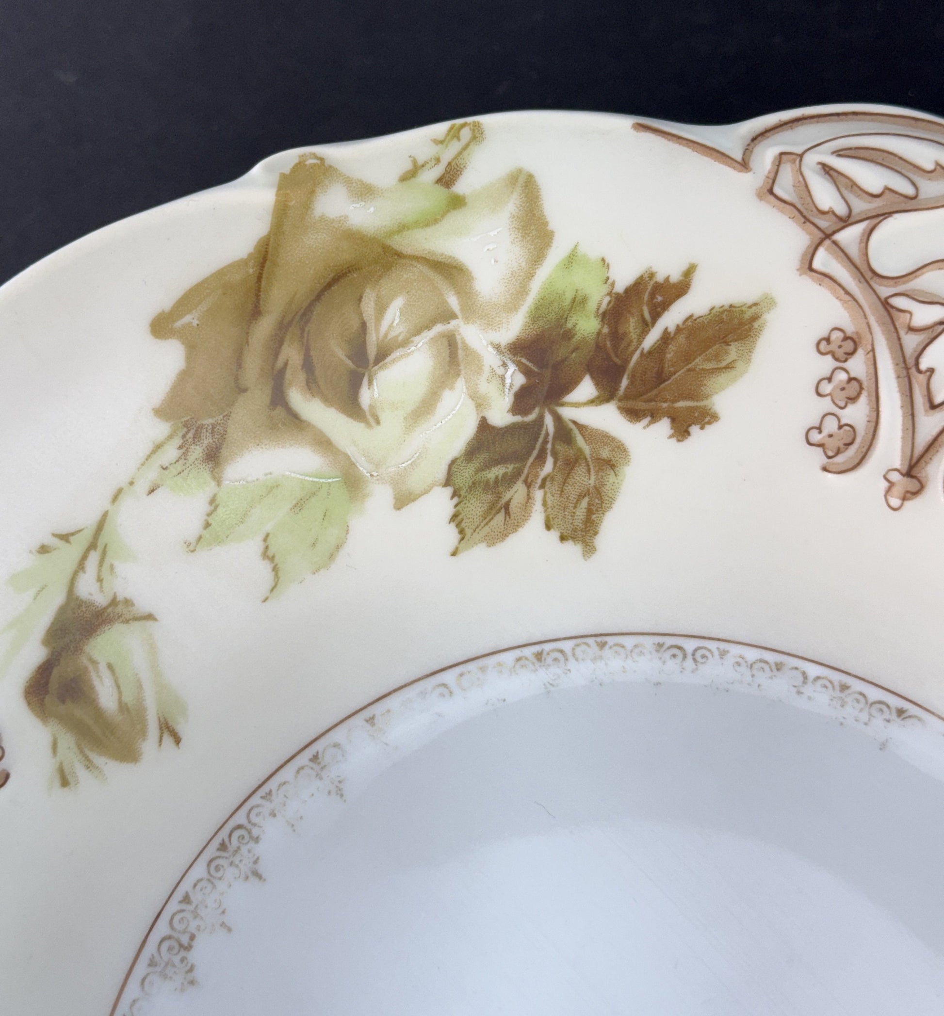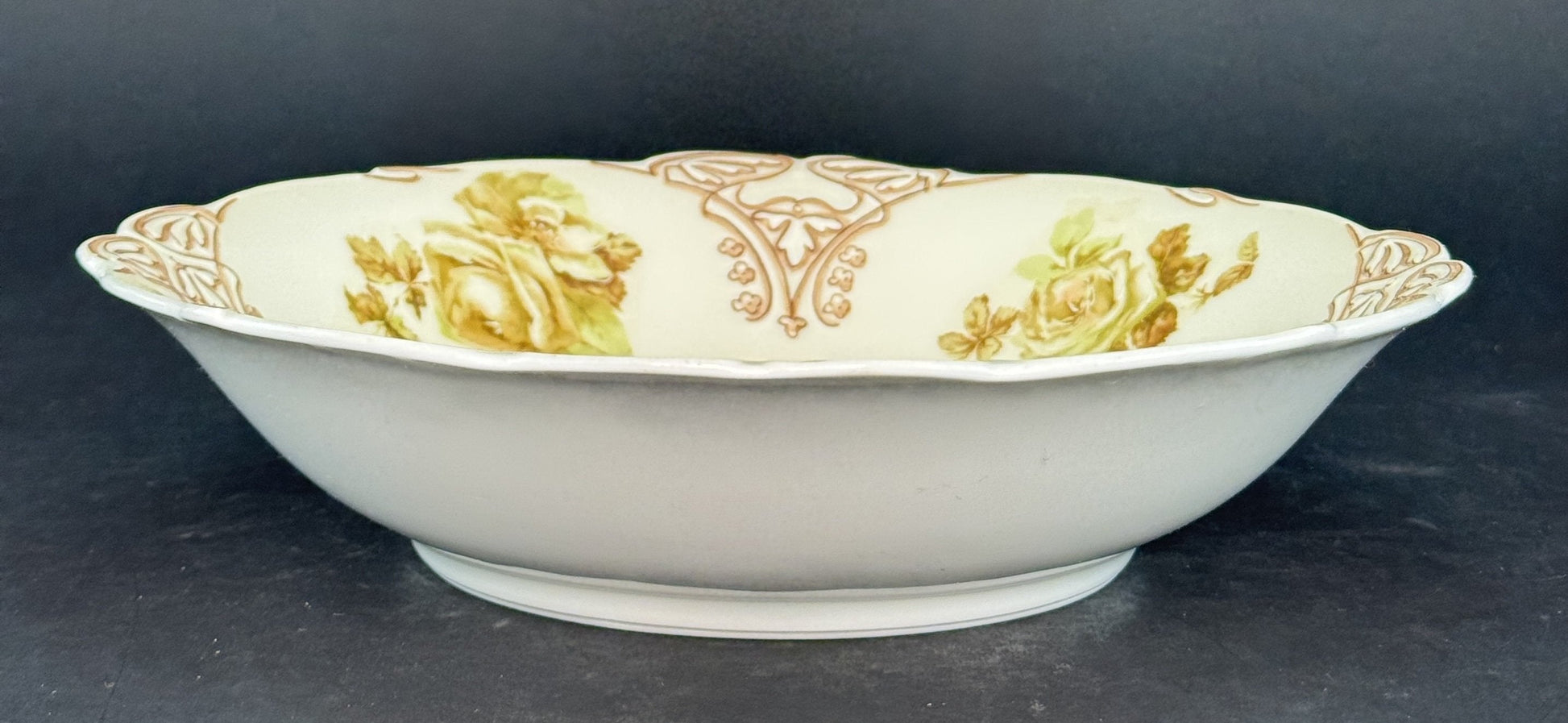 Presented is a fine quality Herman Ohme, Silesia porcelain bowl, dating to around the first quarter of the 1900s. This piece is made in the Old Ivory line, and features lovely decoration of roses and leaves against a mellow ivory color background. Please note, we have many additional pieces in this pattern, which you can find by searching “Old Ivory” in our store.
