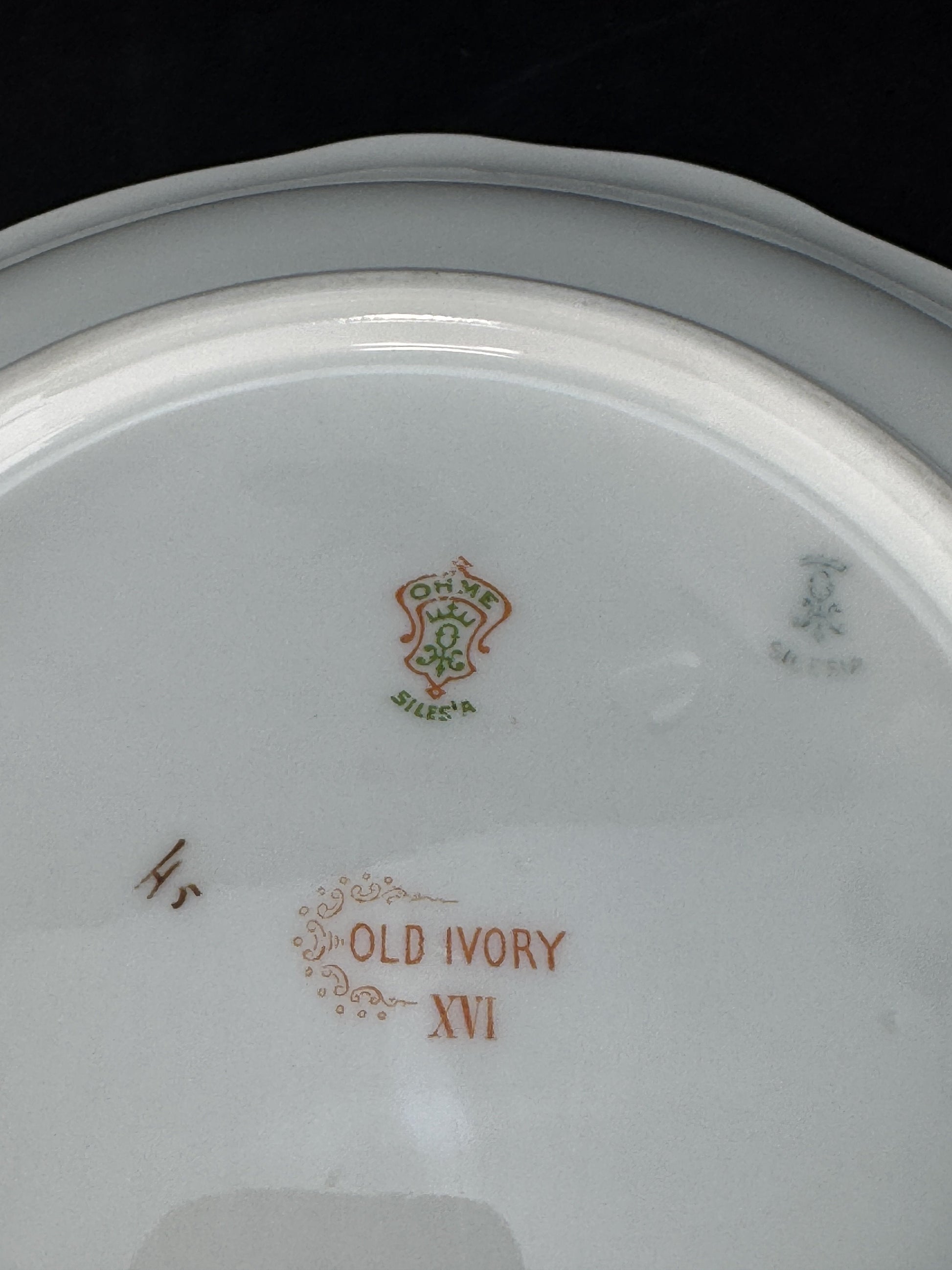 The underside is signed for Hermann Ohme, Silesia Poland, the pattern name Old Ivory, and XVI (16)