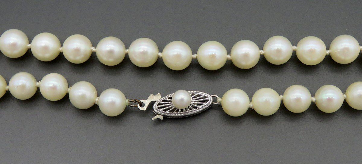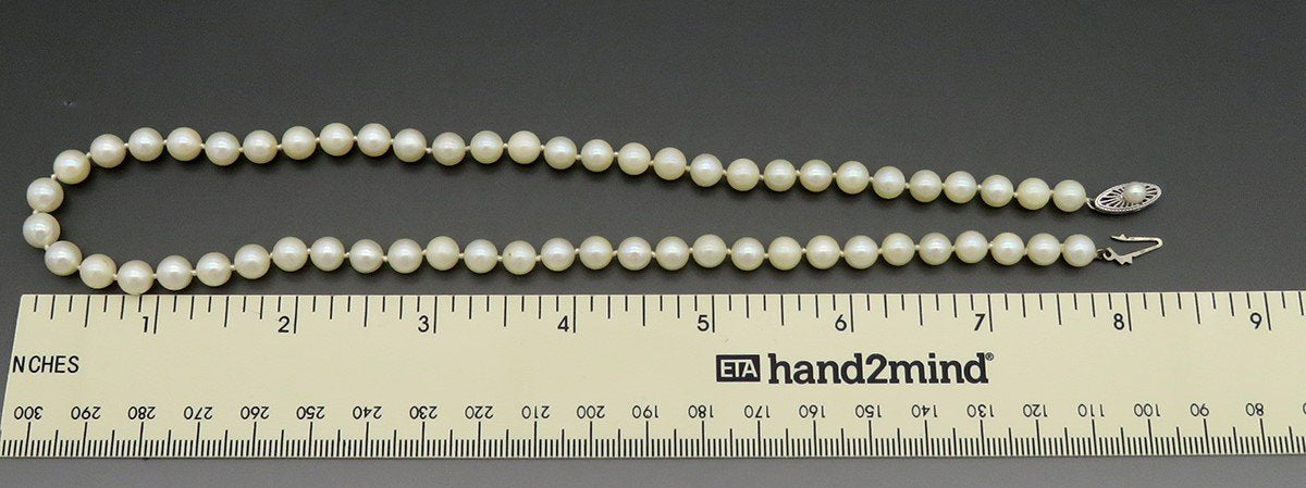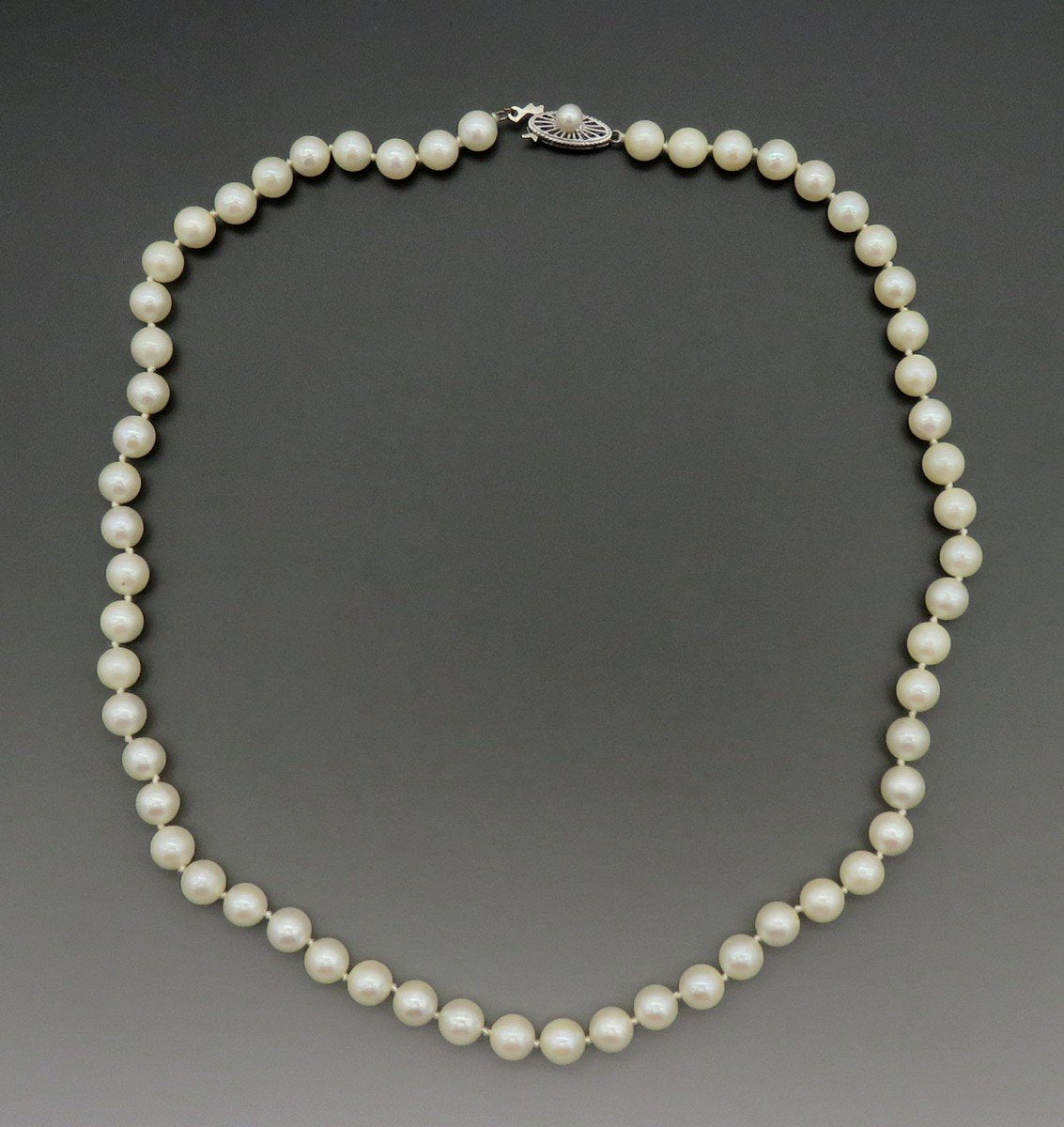 Antique Individually Knotted Strand of 6 mm Pearls w/ 14K White Gold Clasp