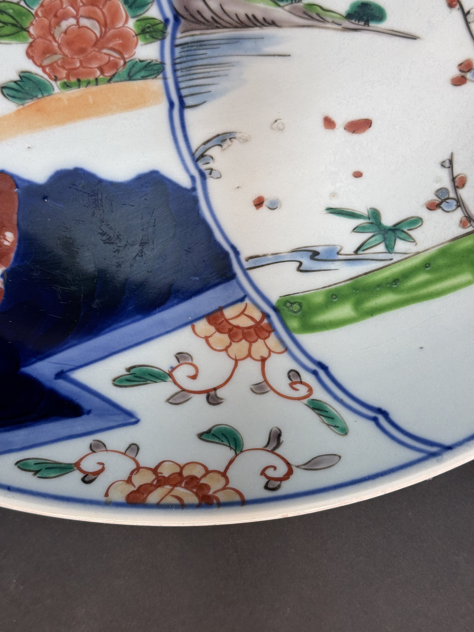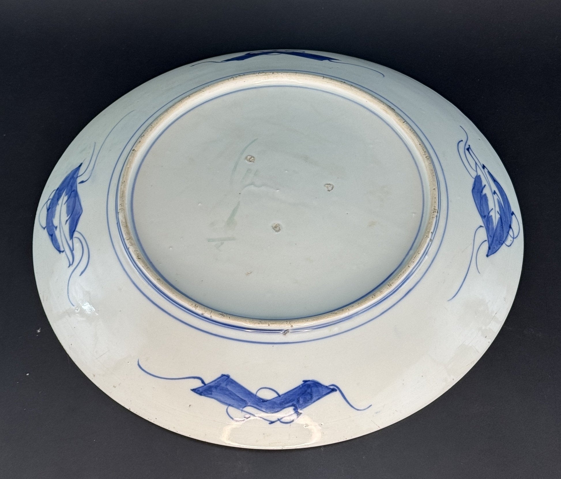 Antique Japan Imari 15.5" Round Platter Charger w Lion Crane Peonies Design