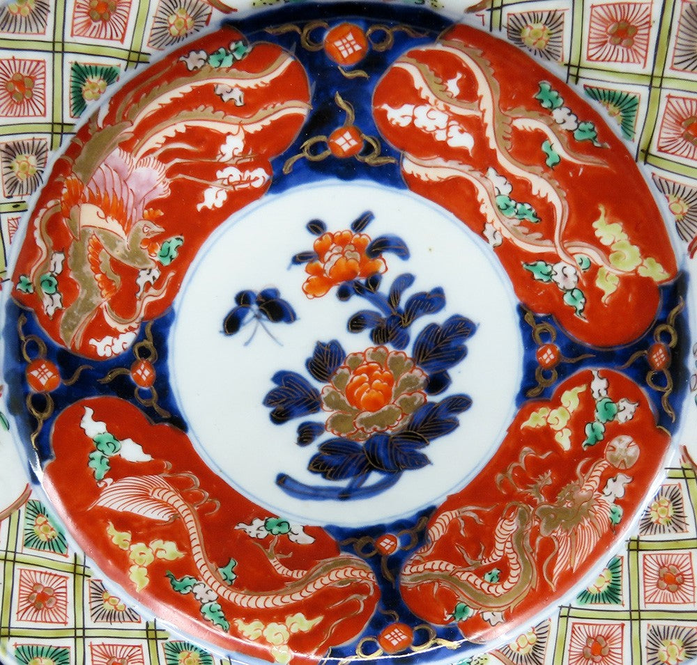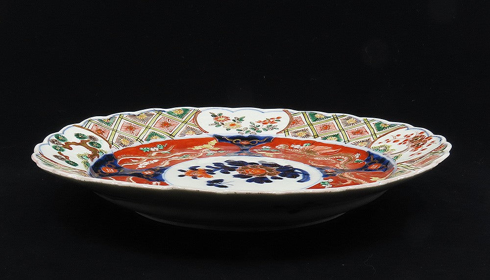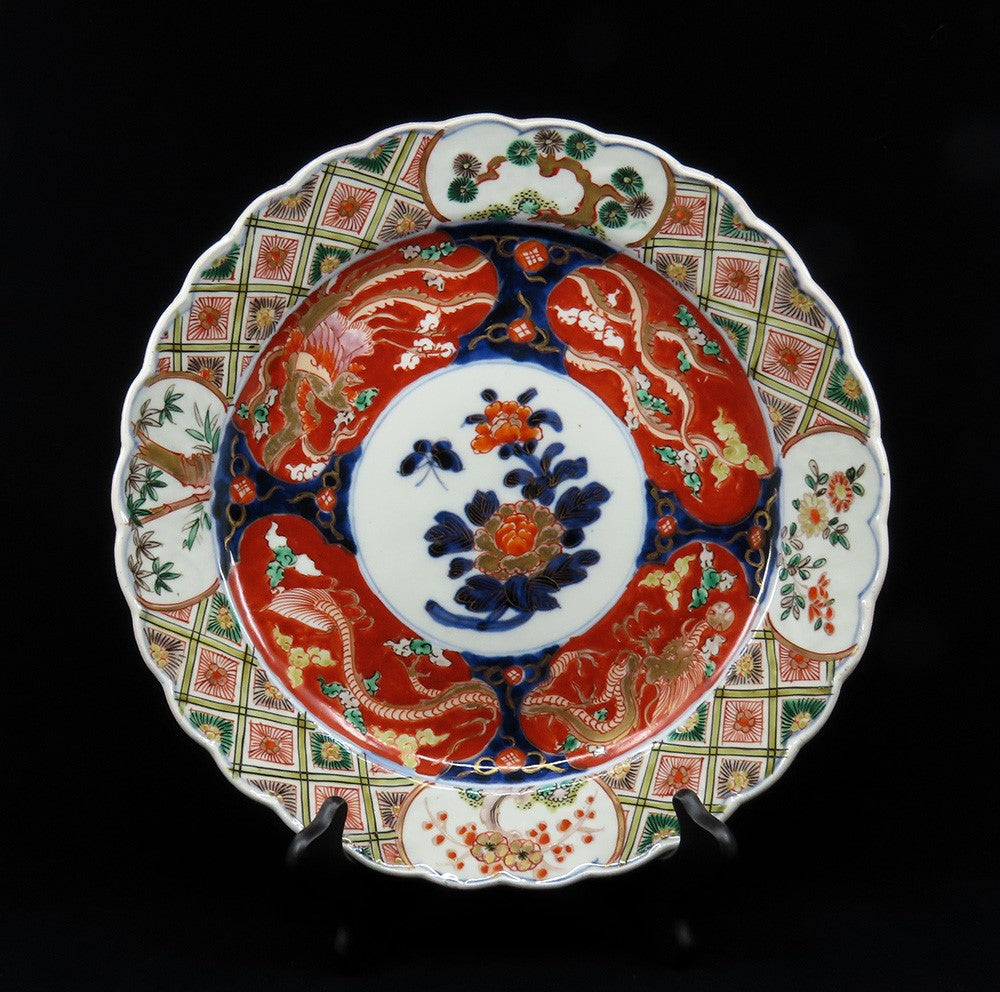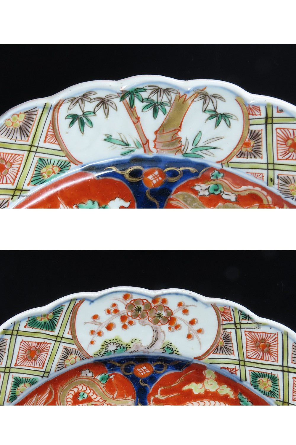 Antique Japanese Imari Dragon Flower Charger Round Tray Plate Platter