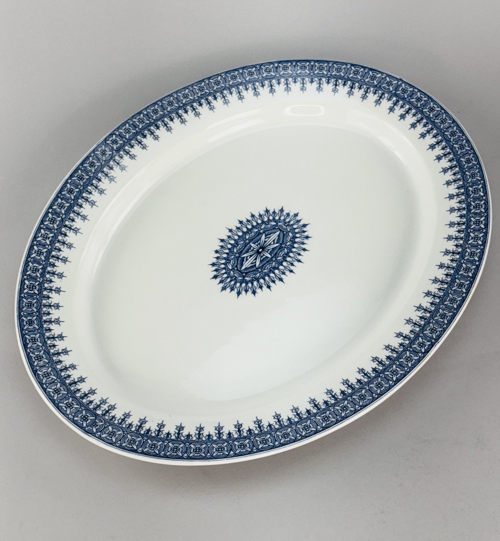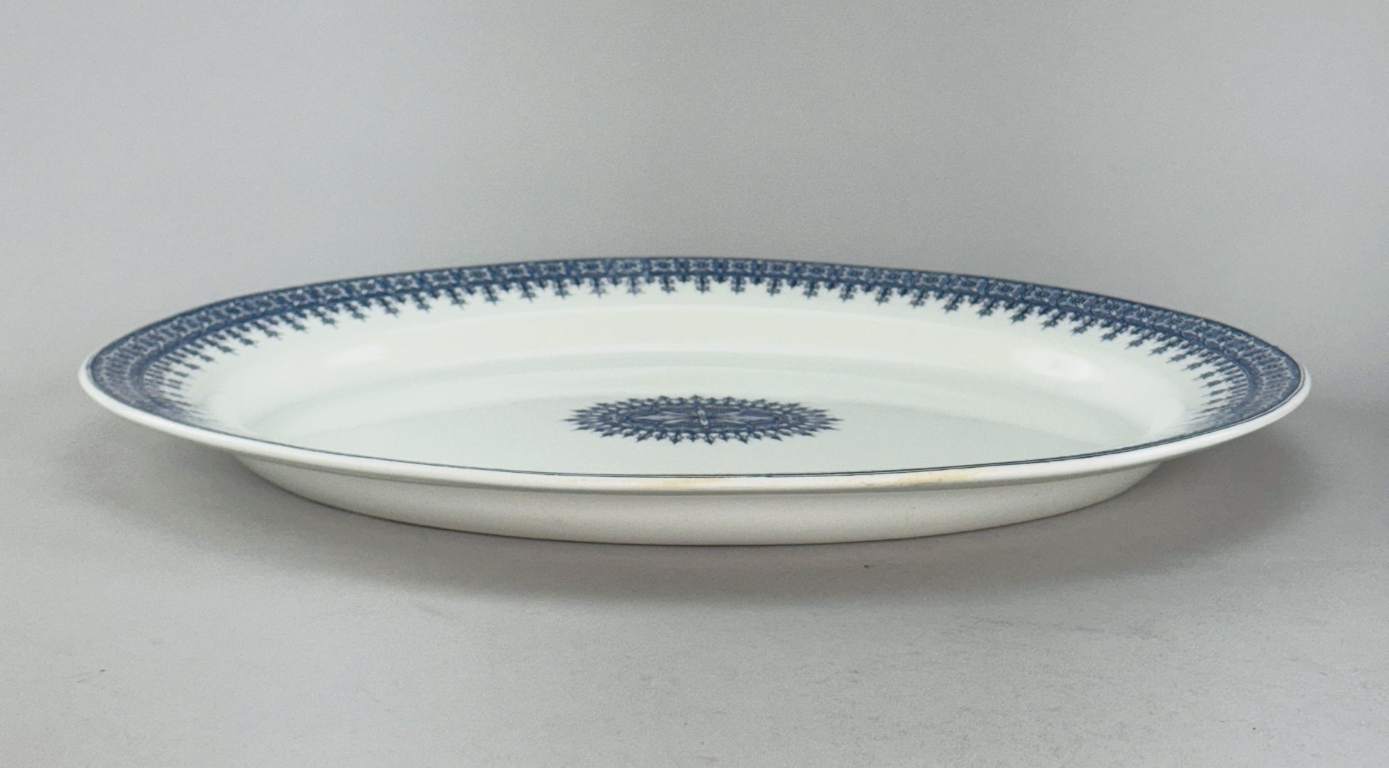 Presented as a fine quality and large oval serving platter made by Royal Worcester of England. This blue-and-white pattern is quite attractive and can blend with many other patterns. Please view all of the photographs as they are an important part of the description.