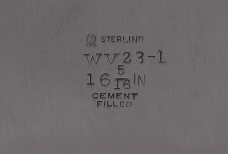 Presented is a beautiful, large sterling silver trumpet form flower vase made by the International Silver Company during the first half of the 20th century. The vase has a ruffled rim and is hand engraved with lovely flower and scroll decorations. There is an old, original monogram of the initials JHN. The base is weighted but the sterling silver body is thick and at least 2/3 of the weight is solid sterling silver.