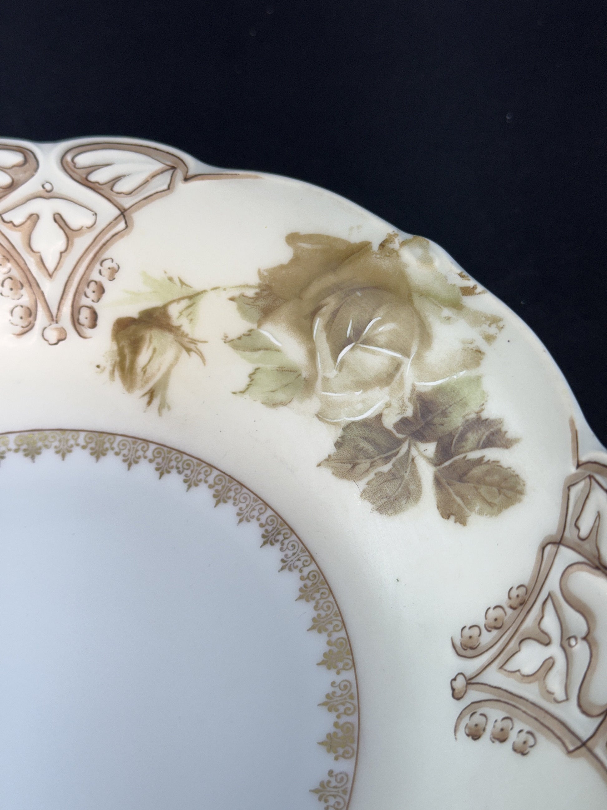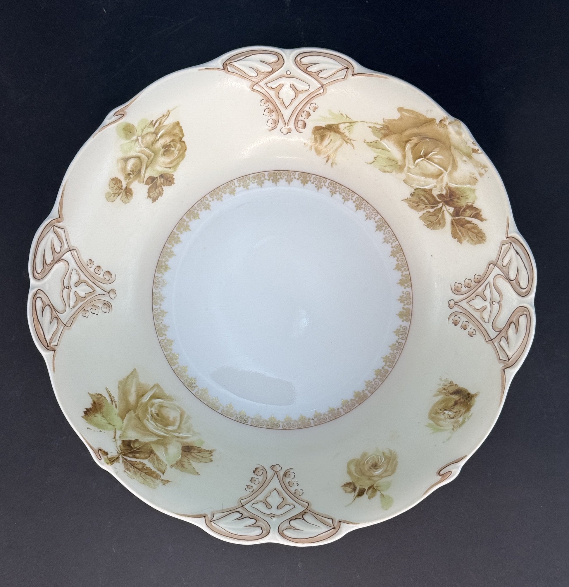 Antique Ohme Silesia Poland Old Ivory Porcelain 16 Round Serving Bowl 9.5"