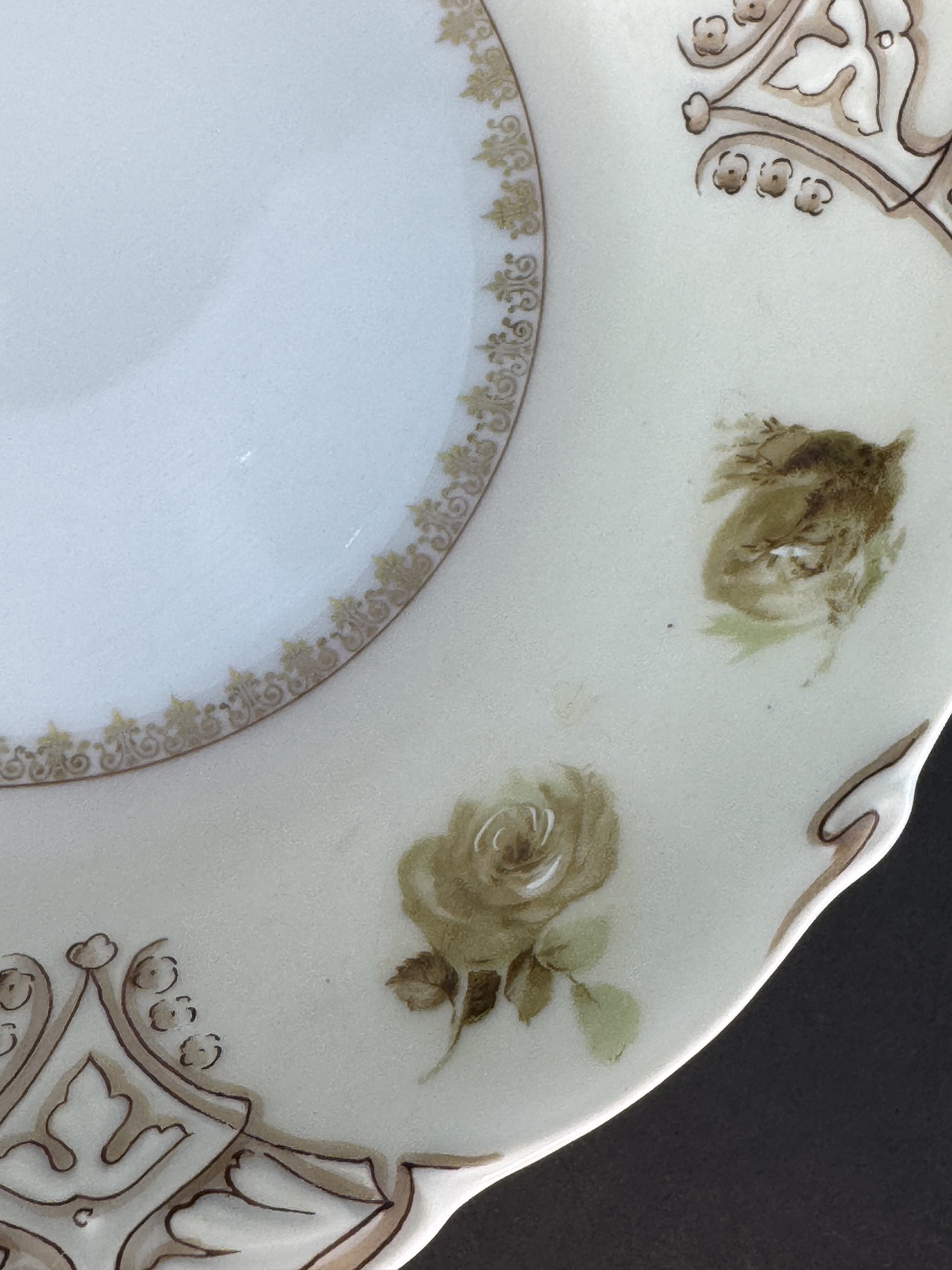This piece is in great overall condition. The gilding is in great shape. There are no chips, no cracks, no breaks, and no repairs.