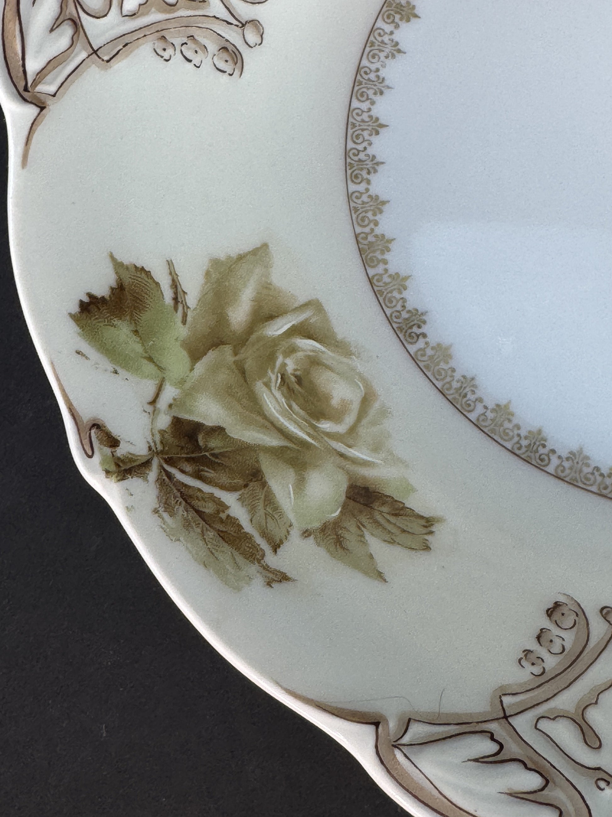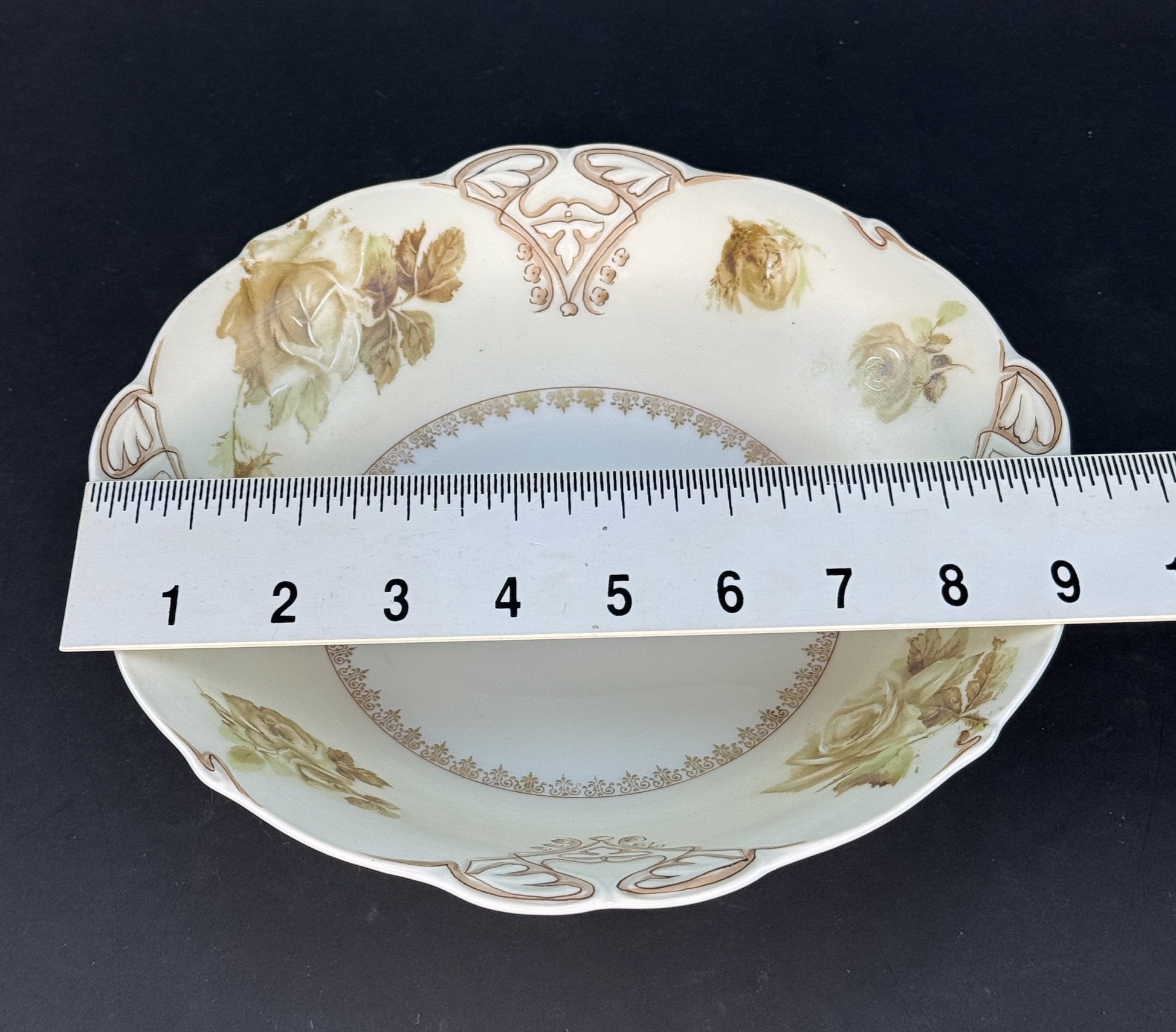 Presented is a fine quality Herman Ohme, Silesia porcelain bowl, dating to around the first quarter of the 1900s. This piece is made in the Old Ivory line, and features lovely decoration of roses and leaves against a mellow ivory color background. Please note, we have many additional pieces in this pattern, which you can find by searching “Old Ivory” in our store.