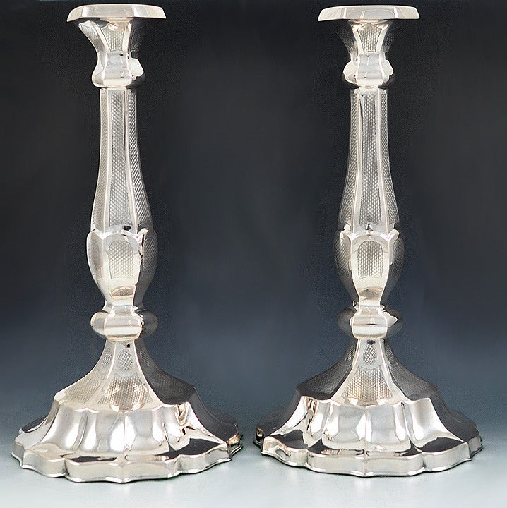 Antique Pair of Large Austria-Hungary Silver Dinner Candlesticks