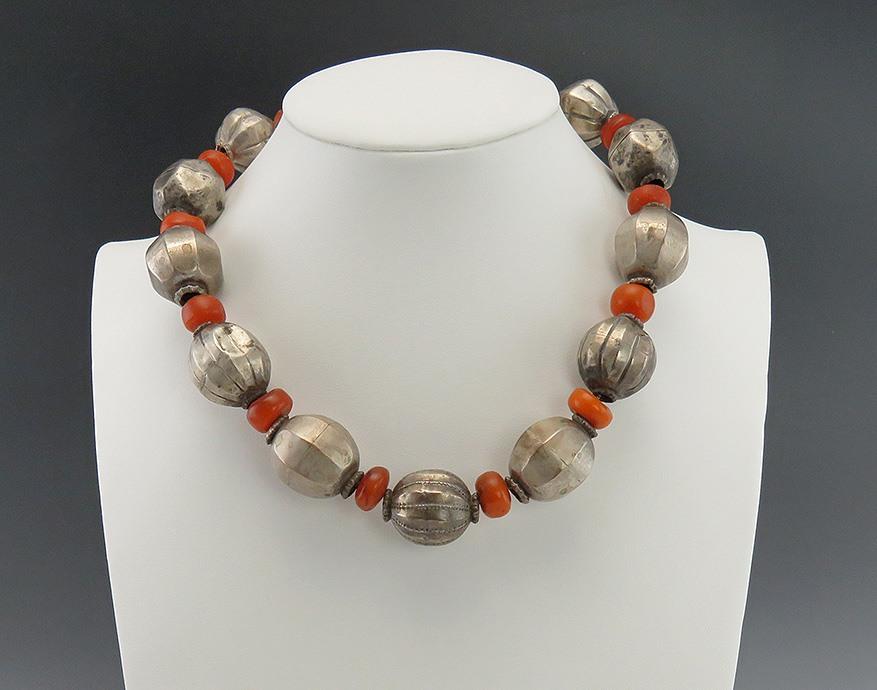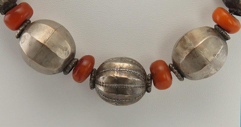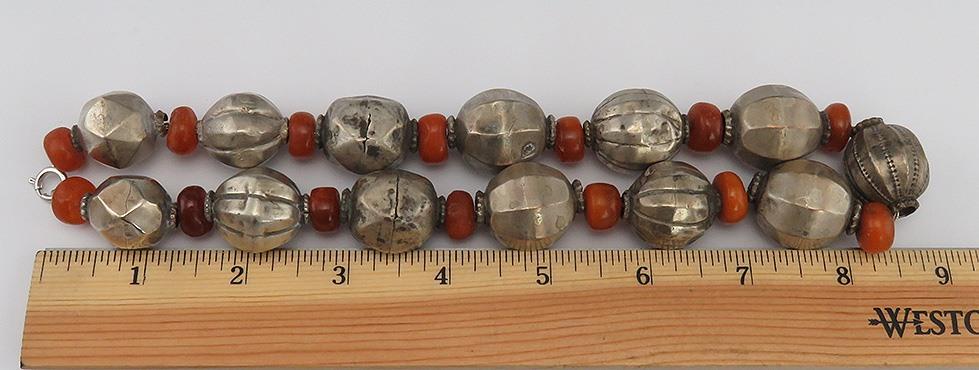Antique Primitive Ethnic Tribal 1890s Amber & Silver Ball Wire Necklace