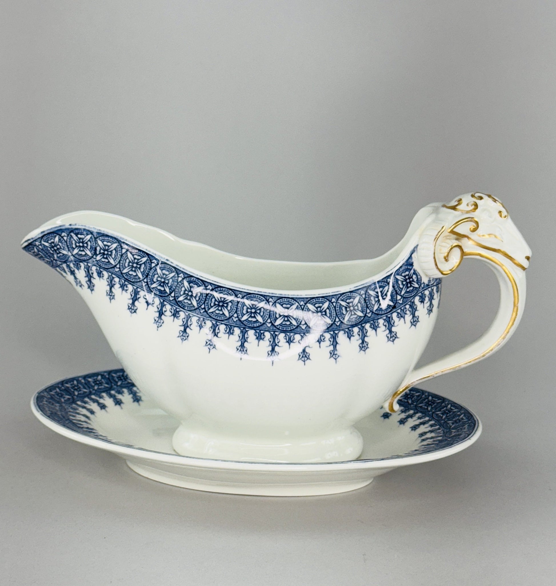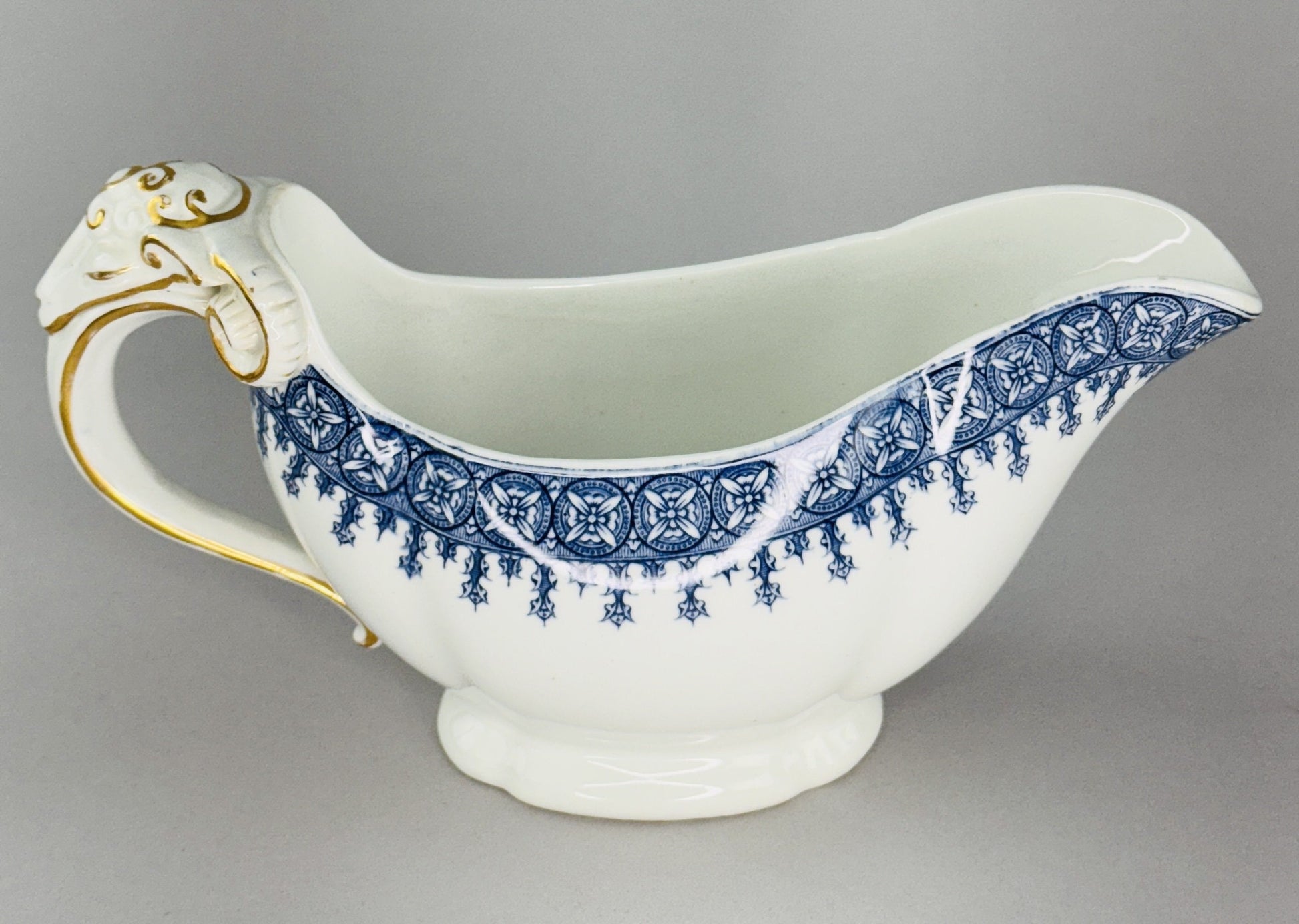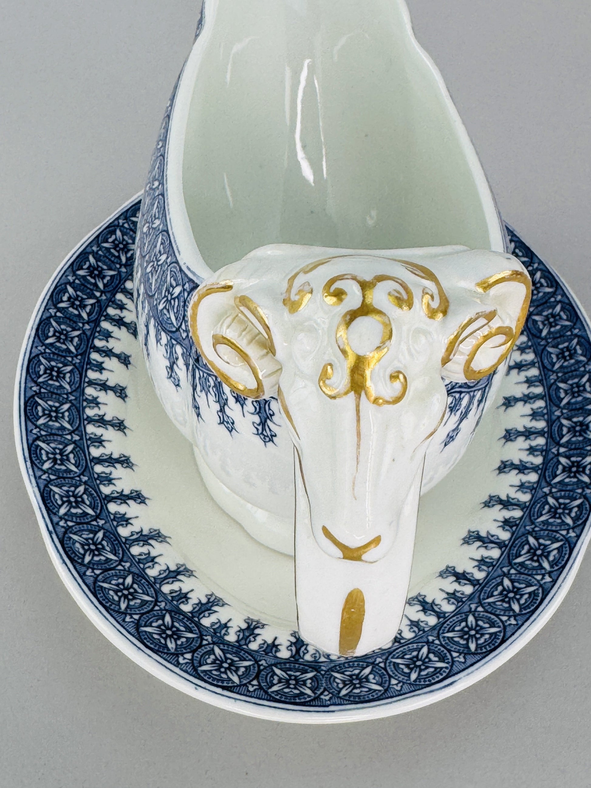 Antique Royal Worcester Gravy Boat and Under Plate w Ram's Heads 1890