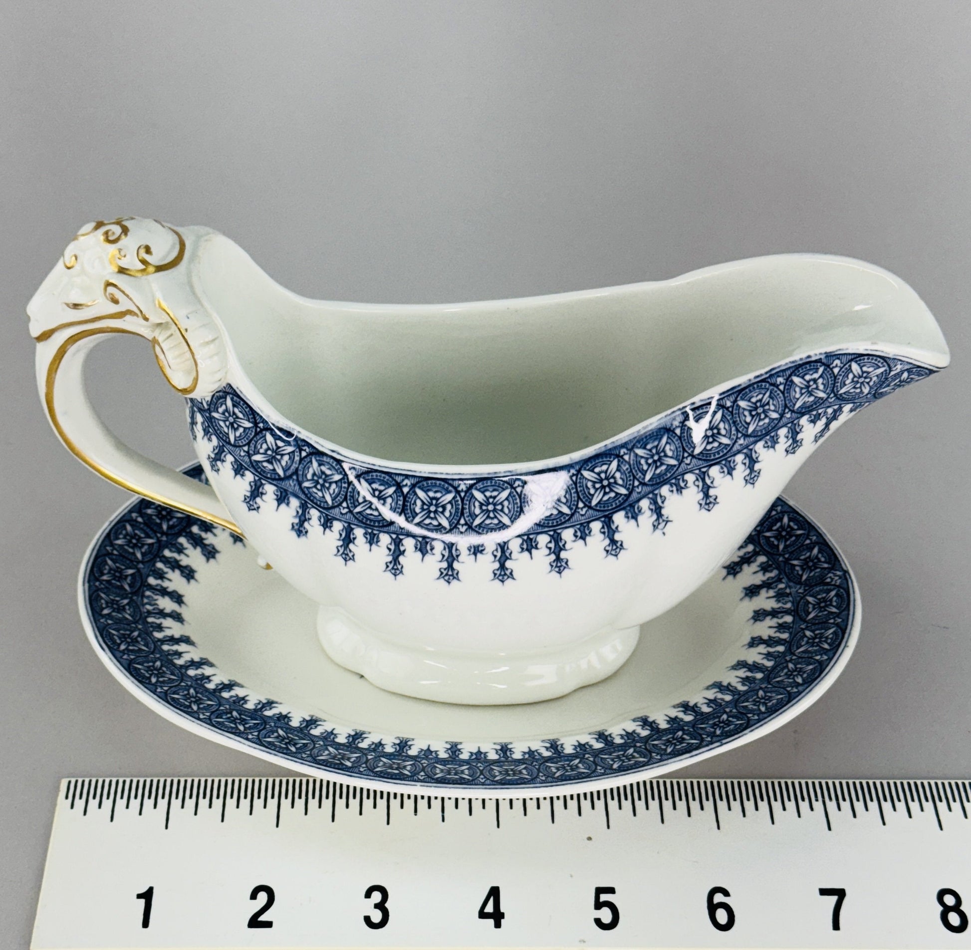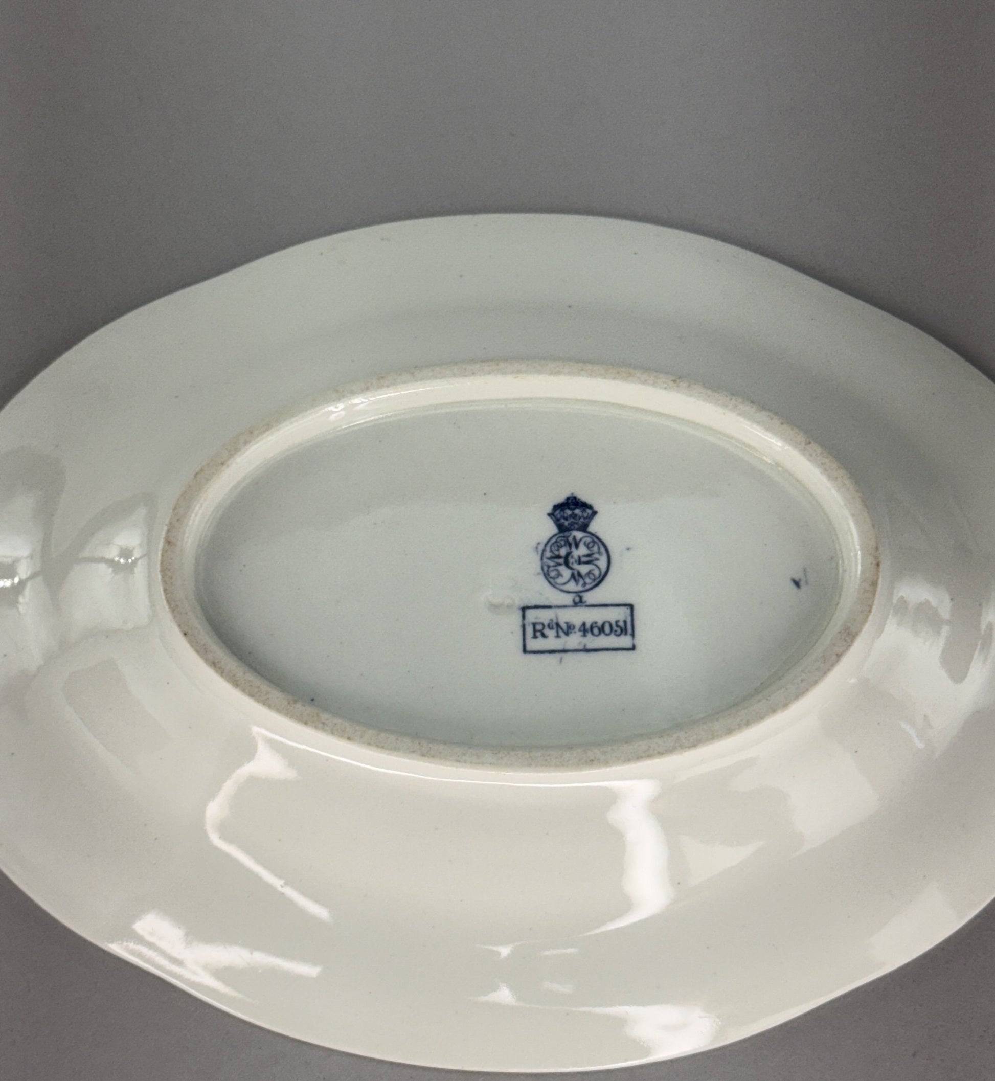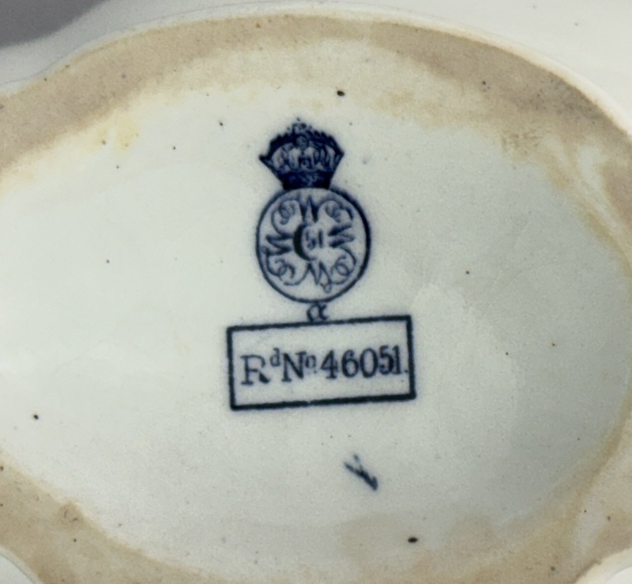 This piece is stamped under both the under plate and the gravy boat. Both parts have the date letter "a" corresponding to the year 1890.