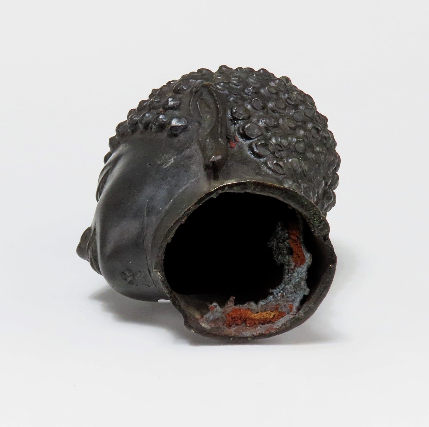 Antique Southeast Asian Bronze Buddha Head Figurine With Flame Ushnisha