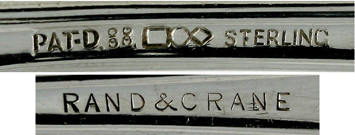 The waffle server is hallmarked on the reverse with the maker’s mark for Dominick & Haff, Pat. 88, Sterling, and Rand & Crane for the retailer.