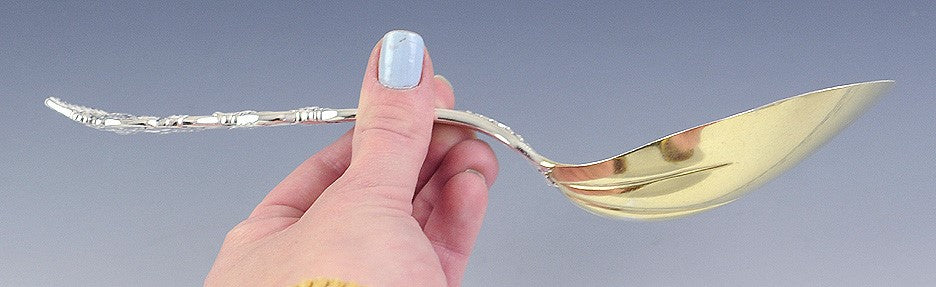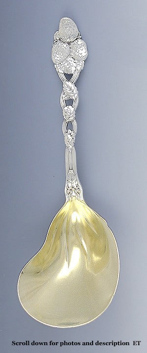 Antique Sterling Silver Tiffany Strawberry Gold Wash Casserole Serving Spoon