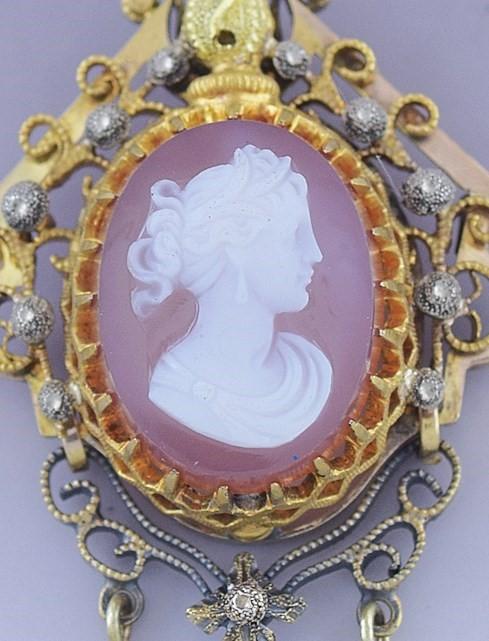 Antique Victorian 14k Gold Carved Cameo Pendant of a Pretty Woman Pendant