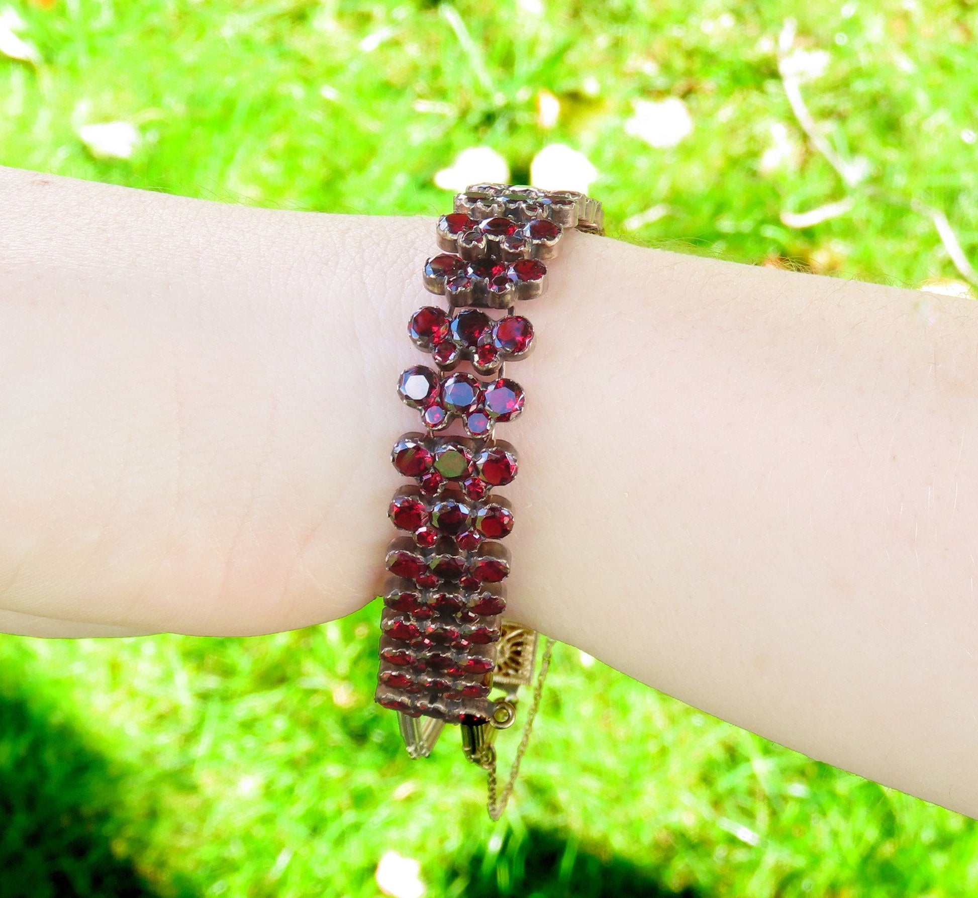 Antique Victorian Gold Filled Garnet Gemstone Bracelet