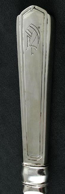 The knife measures 11 1/4 inches long, the fork measures 9 1/8 inches long. The handles are very thick and everything is quite heavy. The handles are hollow and there is no filler or weighting. All of the weight is silver. The combined weight of the pair is 292 grams or 10.3 ounces.