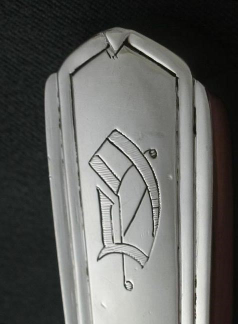 Presented is a fine quality, Chinese export silver fish serving set made by C.J. & Co in the early 1900s. Both handles, the blade of the knife and the tines of the fork are guaranteed to be at least 900 purity silver. The handles are in a very Art Deco form, with a sort of column style. Each one has a nice monogram of the letter D. This style clearly indicates a production date from the 1920s or perhaps early 1930s.