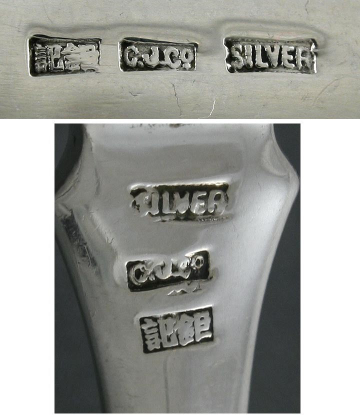 Both pieces are marked CJ & Co, silver and have a Chinese character. Tested and guaranteed to be at least 900 purity silver.