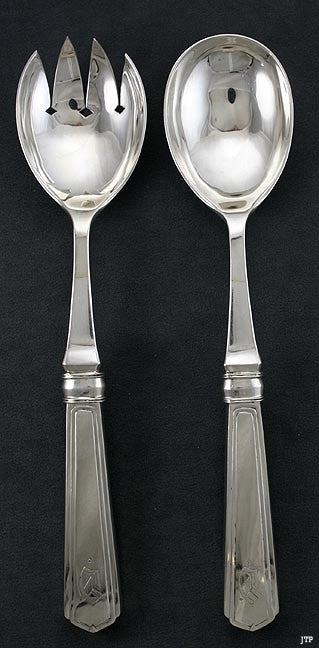 Antique/Vintage c1925 Art Deco Chinese Export Silver CJ Co Salad Set 10"