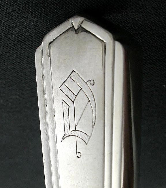 Presented is a fine quality, Chinese export silver salad or serving set made by CJ & Co in the early 1900s. Both handles, the bowl of the spoon and the tines of the fork are guaranteed to be at least 900 purity silver. The handles are in a very Art Deco form, with a sort of column style. Each one has a nice monogram of the letter D. This style clearly indicates a production date from the 1920s or perhaps early 1930s.