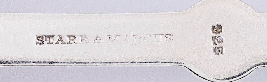 This piece is stamped on the stem with the retailer's mark for Starr & Marcus as well as 925 for sterling silver. Wendt often stamped his flatware with just the 925 mark. This pattern is known to have been made by John Wendt.