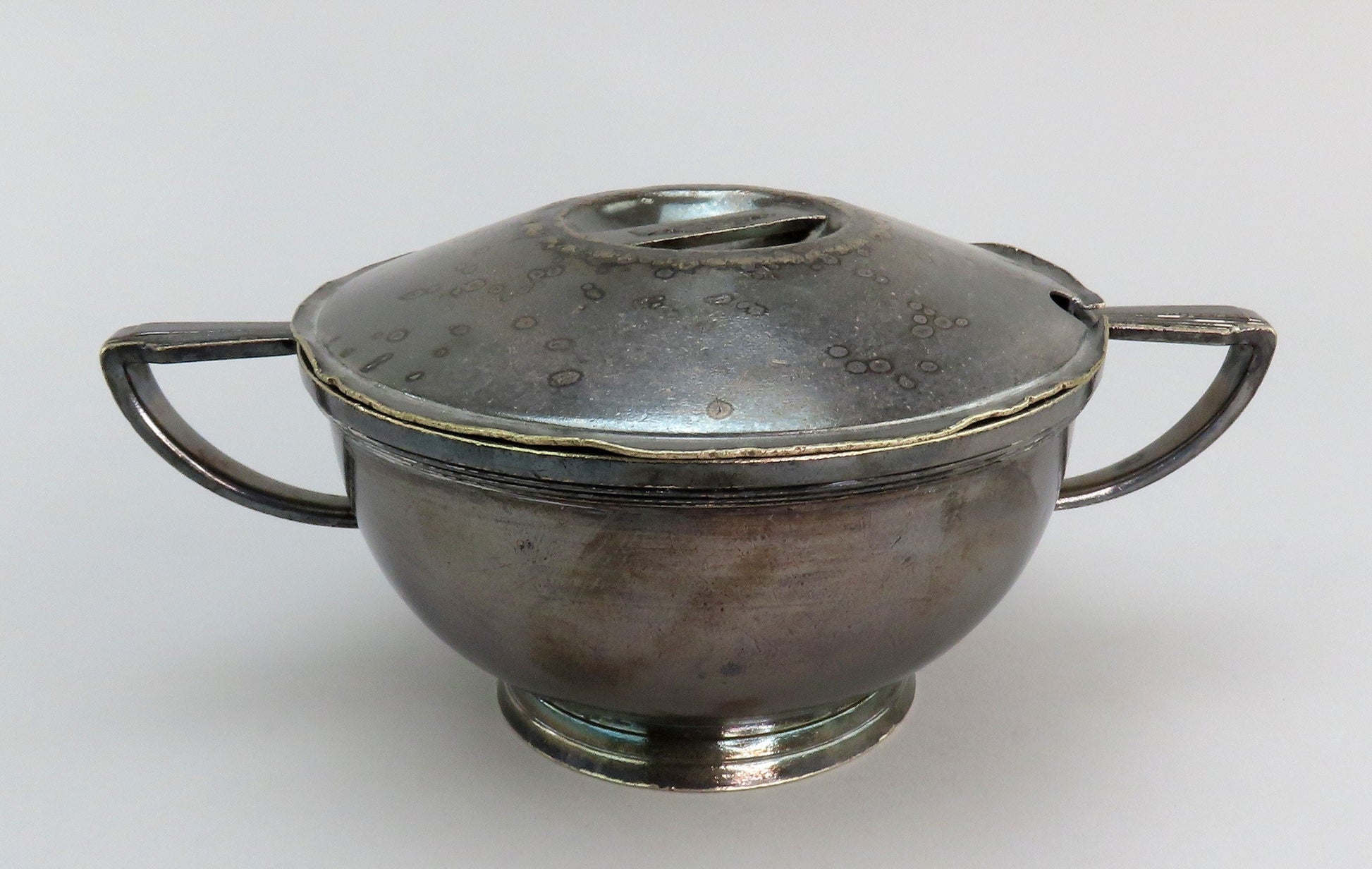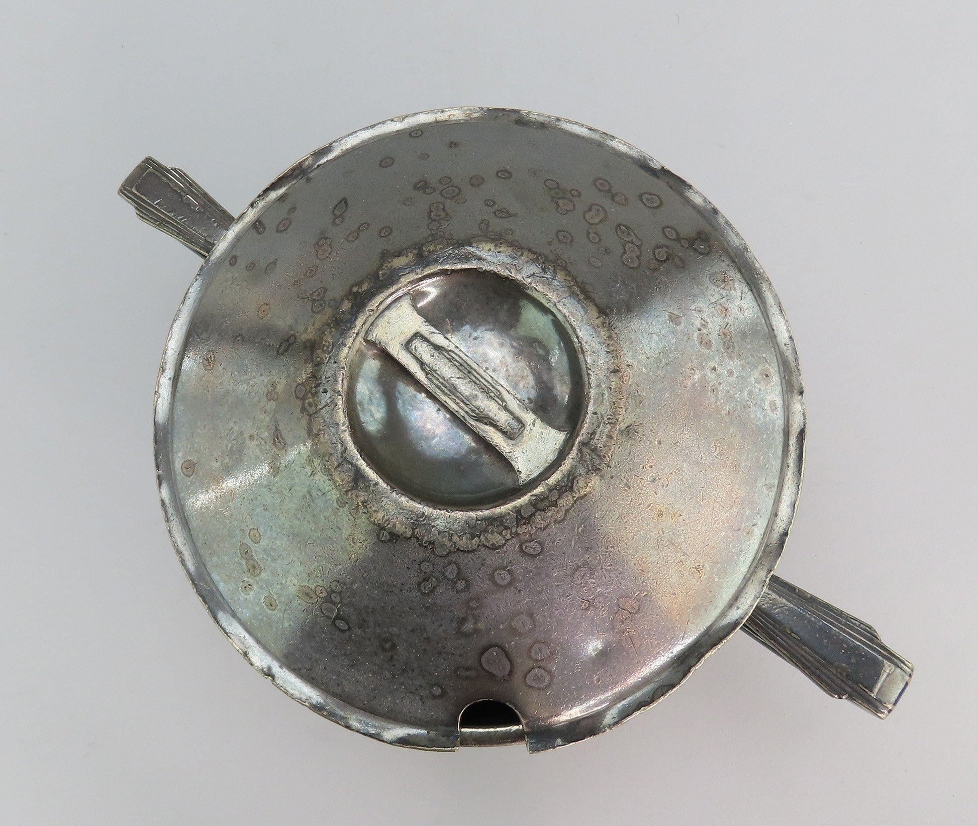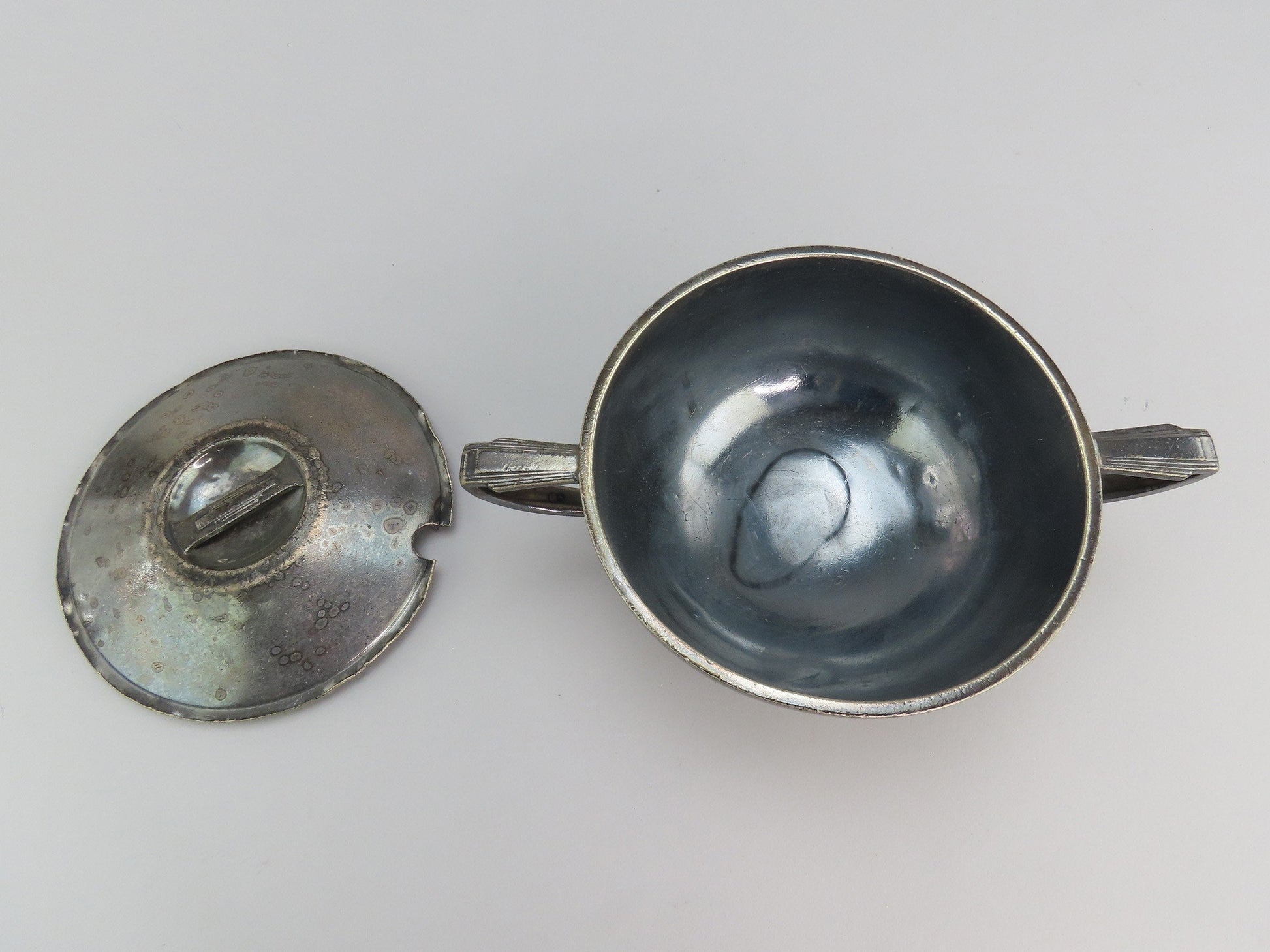 This piece is in AS IS condition, likely from a lot of use. There is a dent on the side of the bowl and surface scratches throughout the piece. The lid has dents and ripples on the edge which are represented well in the photos. The piece has no monograms, no monogram removals, no breaks, and no repairs.