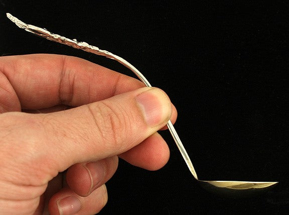 The ladle measures 5 1/4 inches long and weighs 23.9 grams.