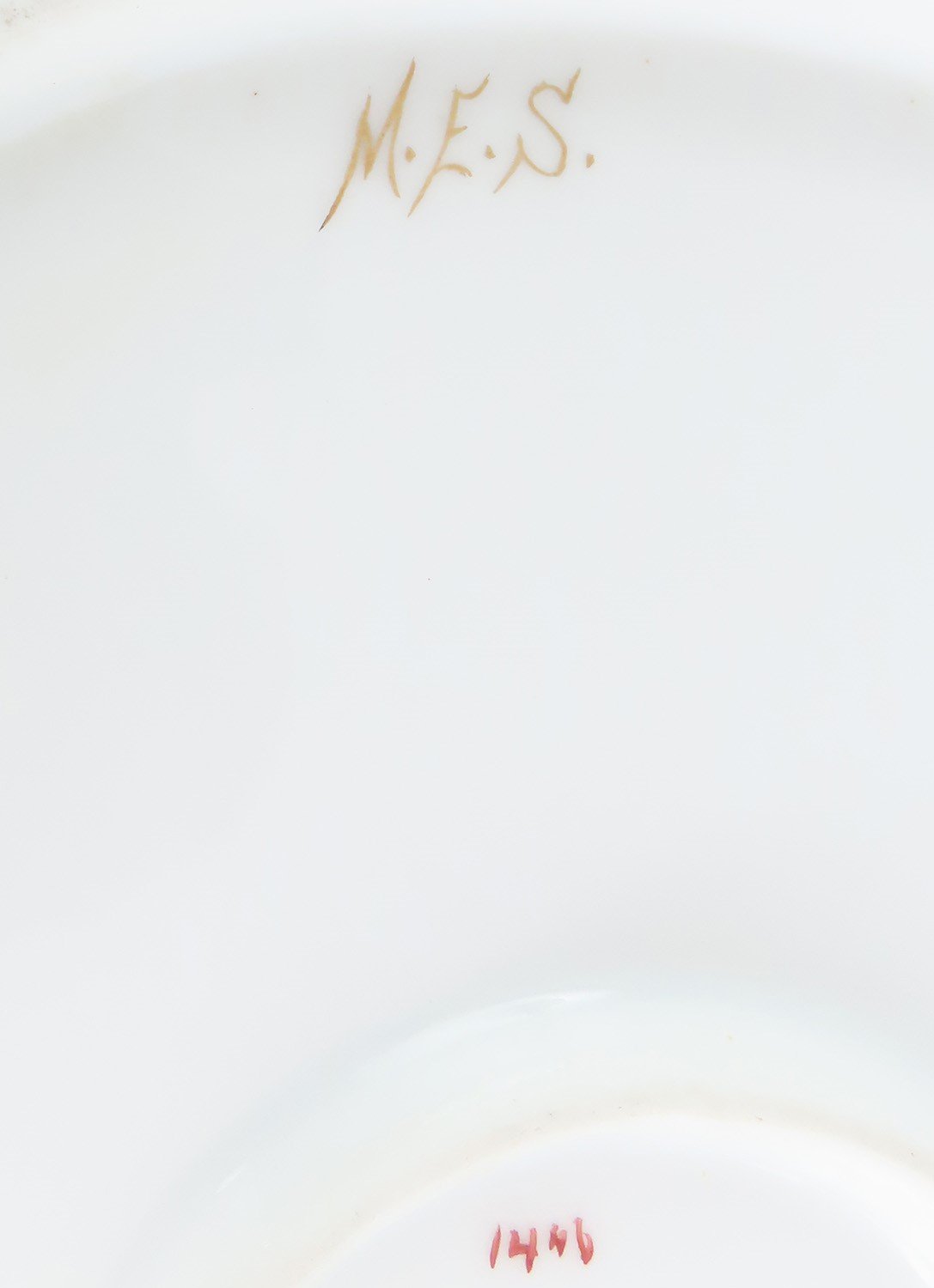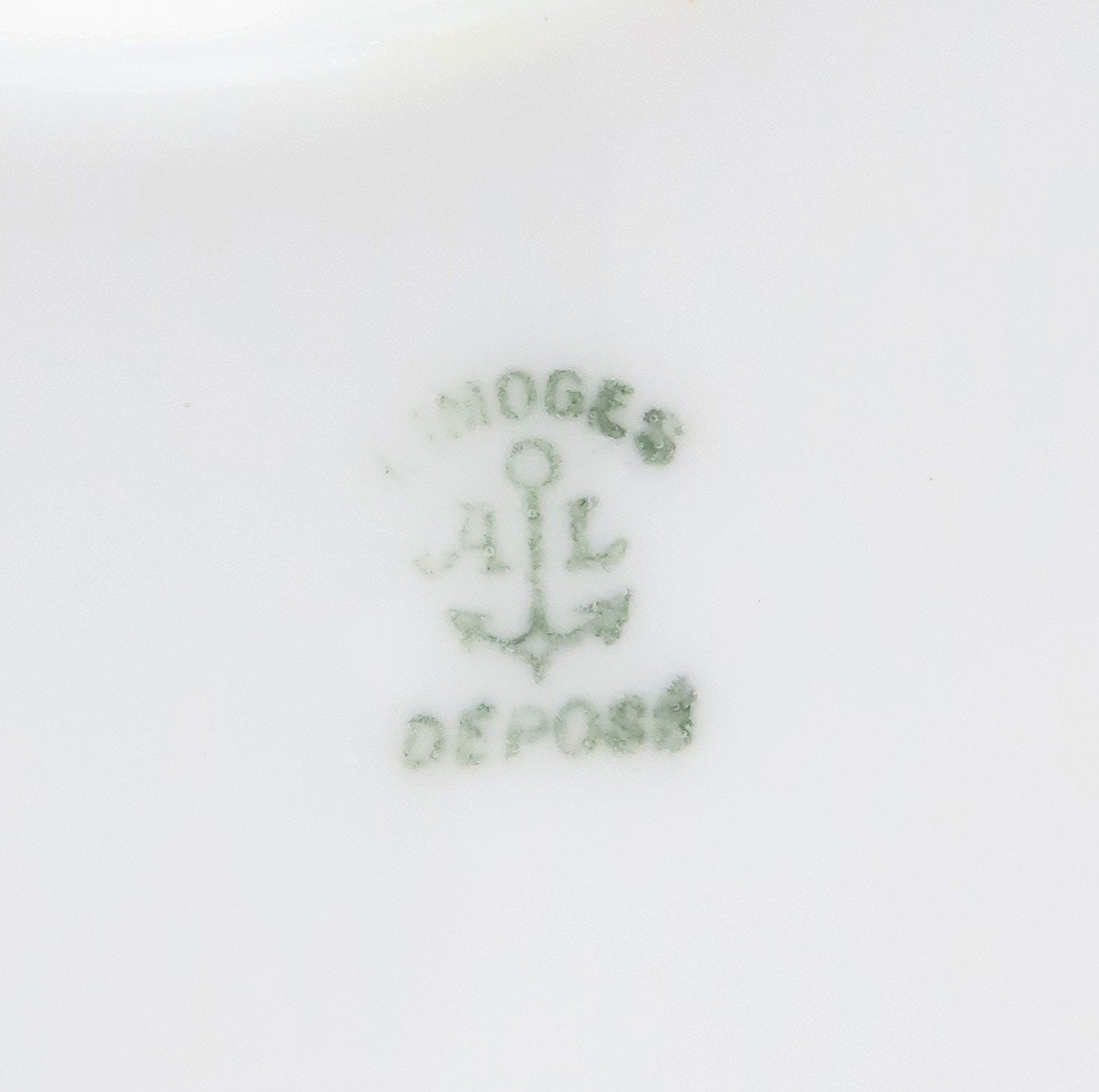 The piece is marked on the underside with the maker's mark for Limoges Depose with AL for Albert Lanternier. MES is painted on the underside as well, representing the painter.