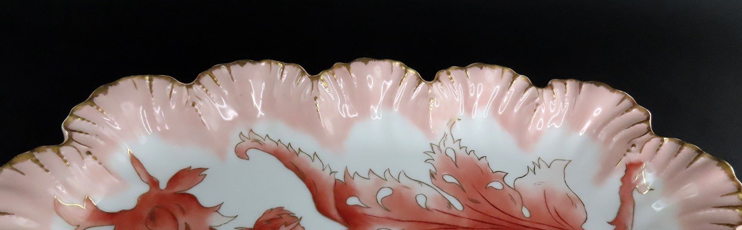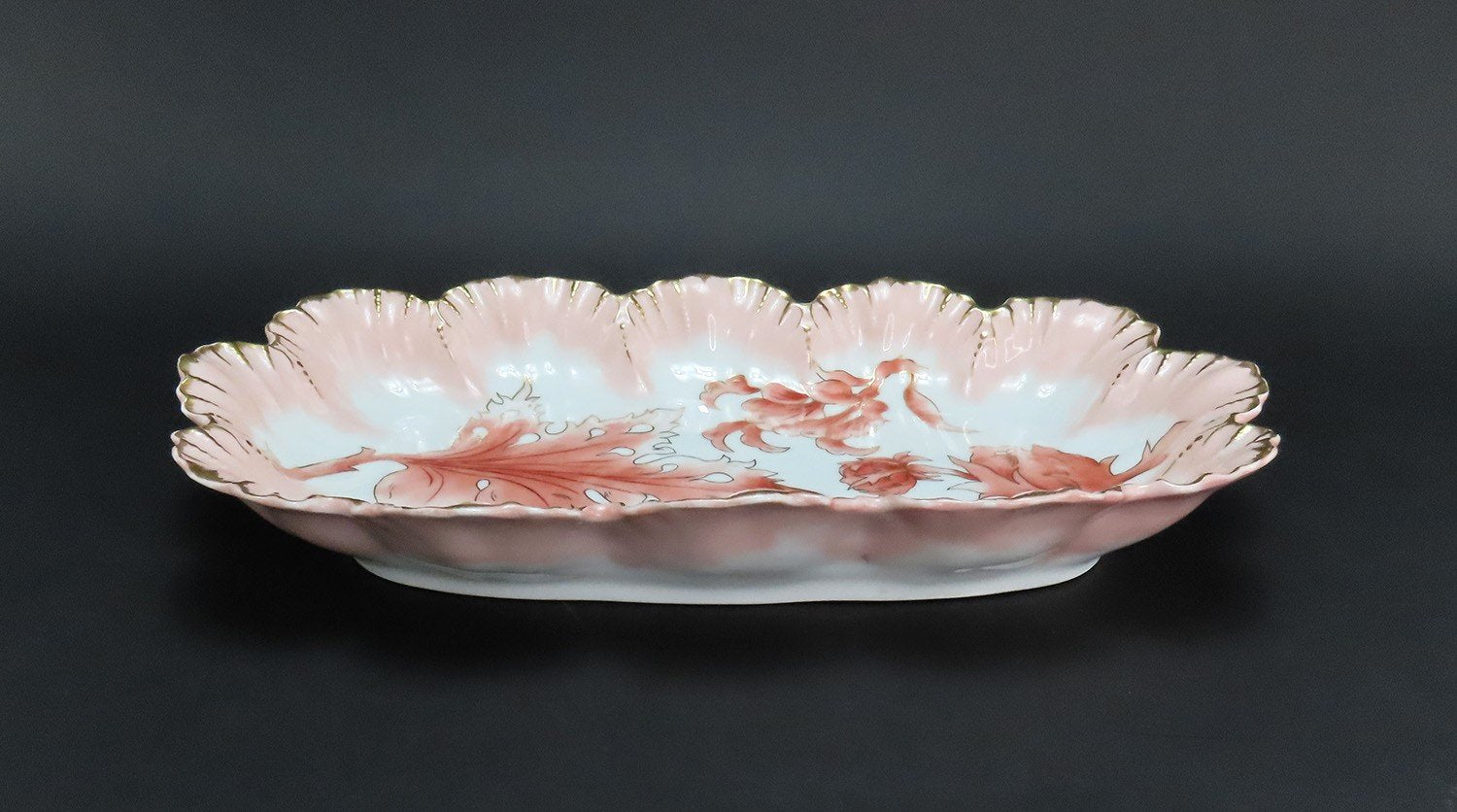 Art Nouveau Limoges Depose Porcelain Platter Scallop Gilded Edge Foliate Design