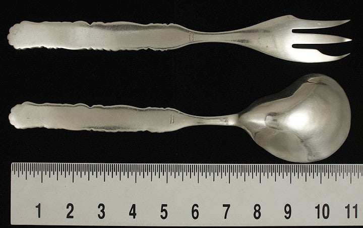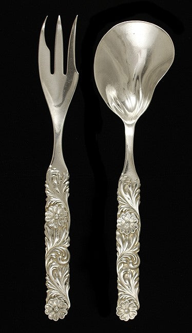 Art Nouveau Silvercraft Sterling Silver Floral Salad Fork Spoon Serving Set