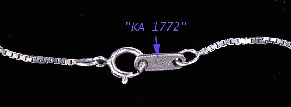 The chain clasp is stamped "925" sterling silver. It also bears the marks "KA" and "1772".