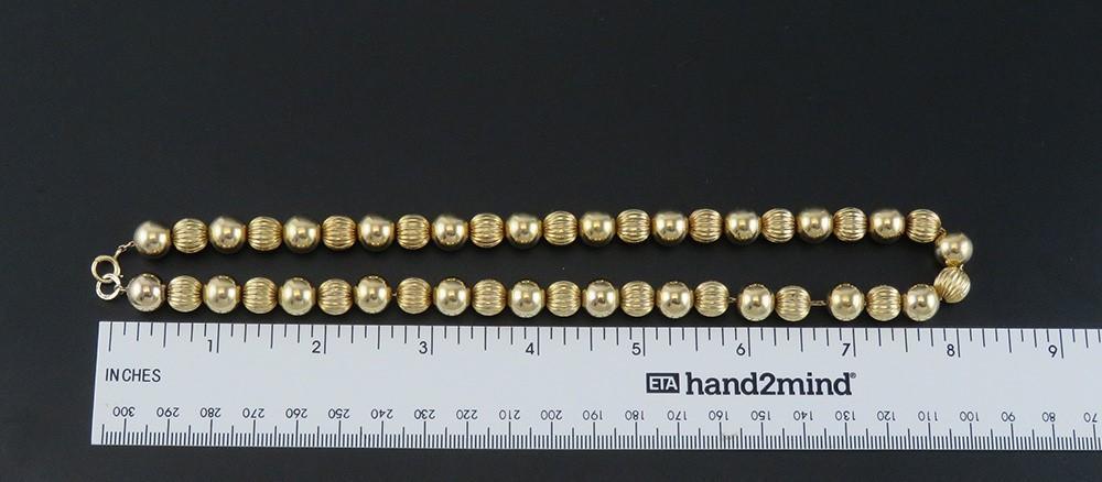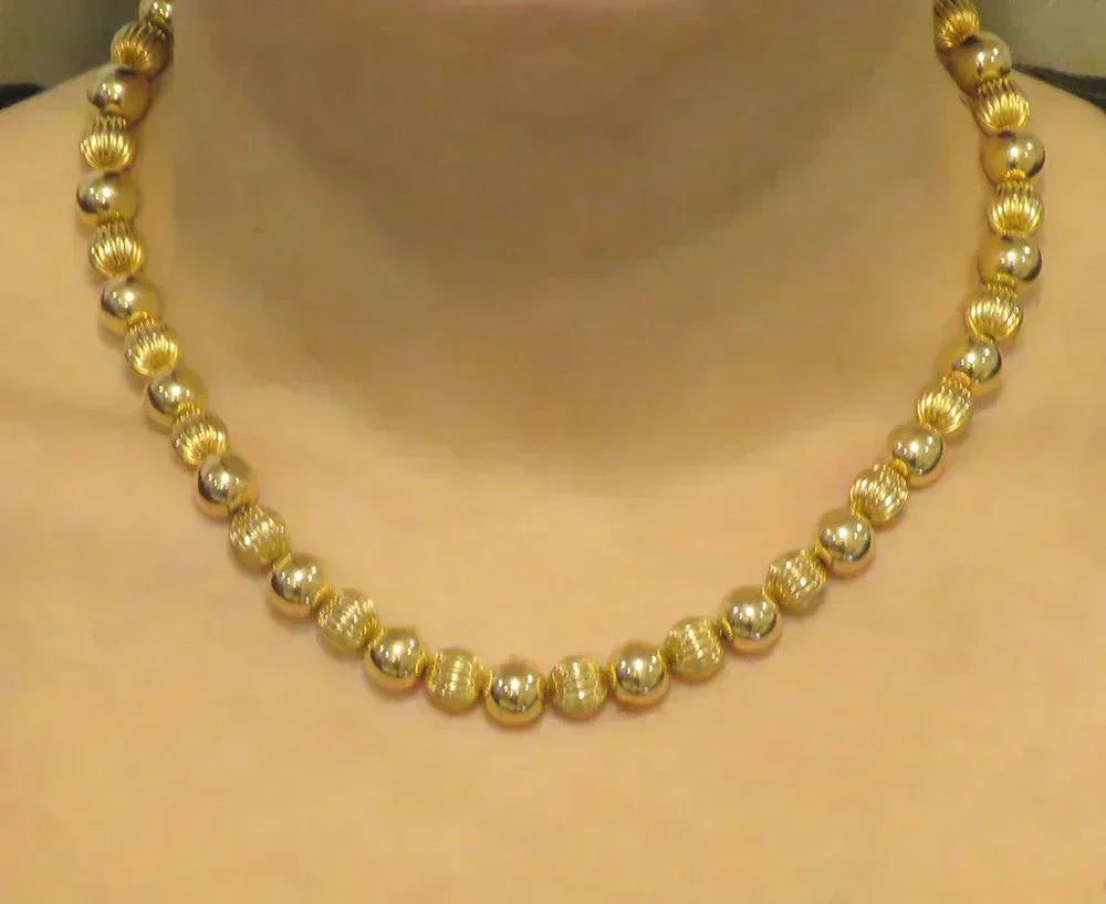 Attractive 14K Yellow Gold Textured Beaded Choker Necklace 16.5" 30.6g