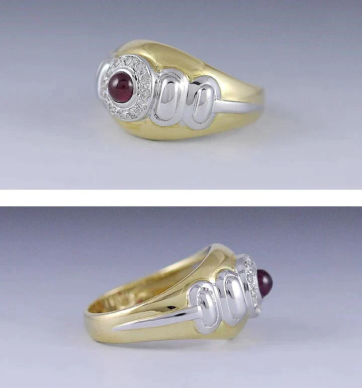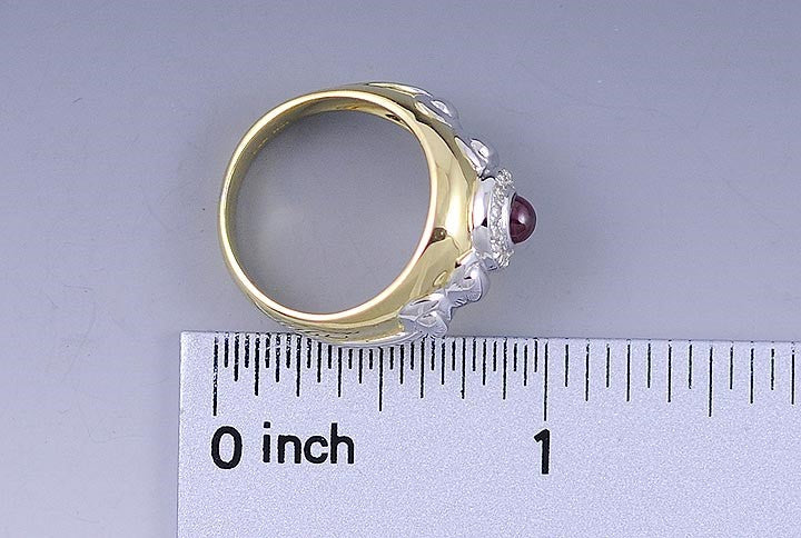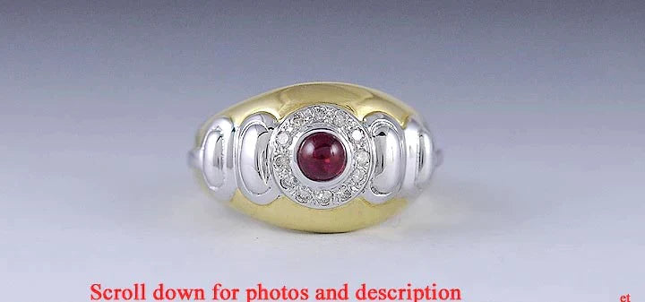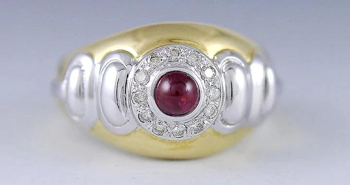 Attractive 18k White/Yellow Gold Cabochon Ruby Diamond Ring
