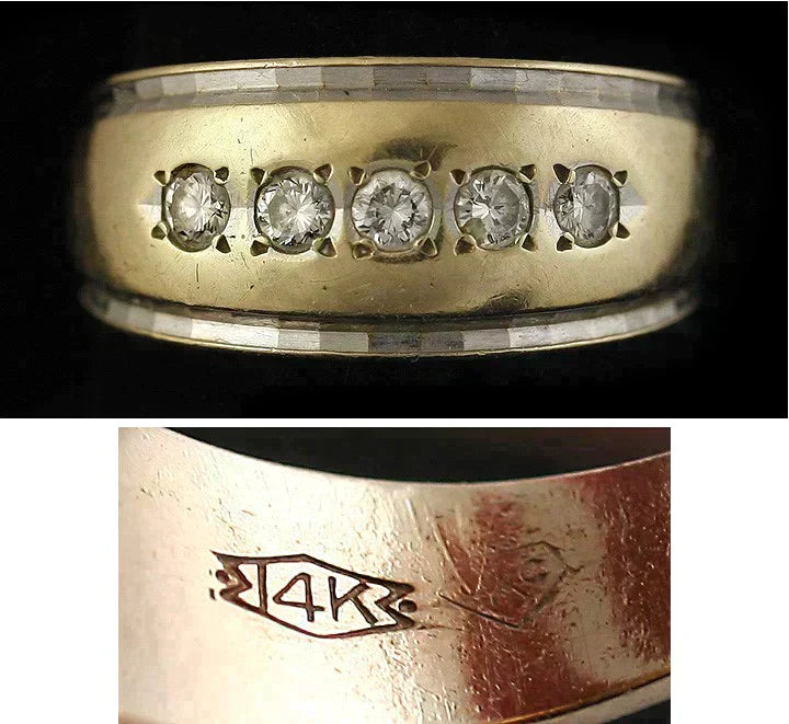 Attractive Vintage Two Tone 14K Gold & 5 Brilliant Diamond Ring