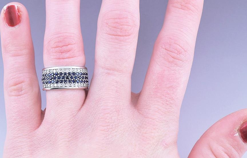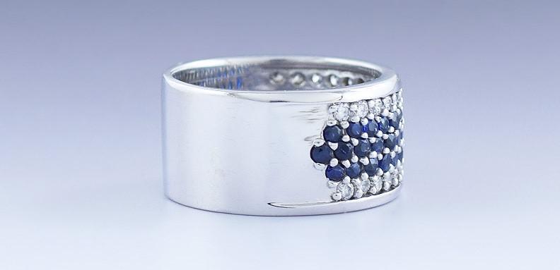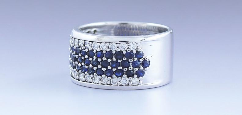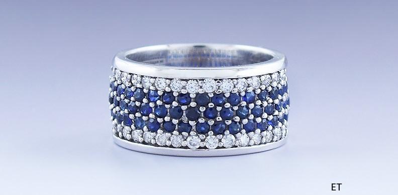 sapphires, with a row of diamonds on either side. There are 30 total diamonds,