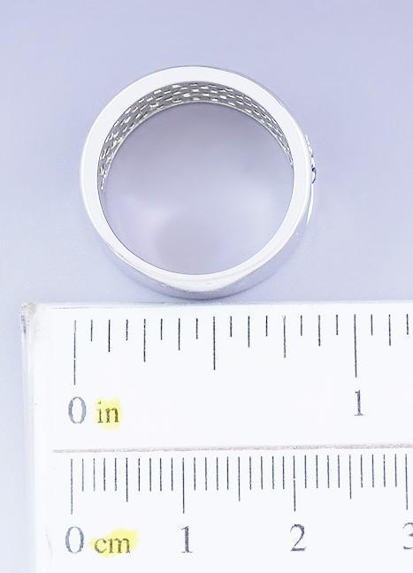 Presented is a beautiful 14 karat white gold, sapphire and diamond ring. This The ring is in great condition. The diamonds and sapphires are all intact and The band is stamped and guaranteed 14k and has a maker's mark we The ring is a size 7. Due to the design of the ring, it probably cannot be The ring weighs 9.8 grams. -jm
