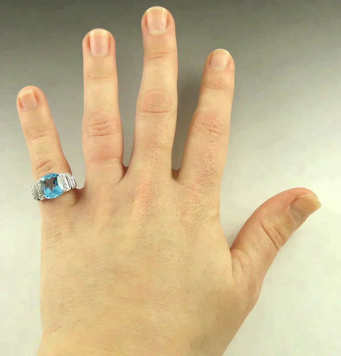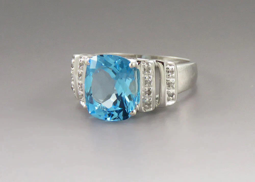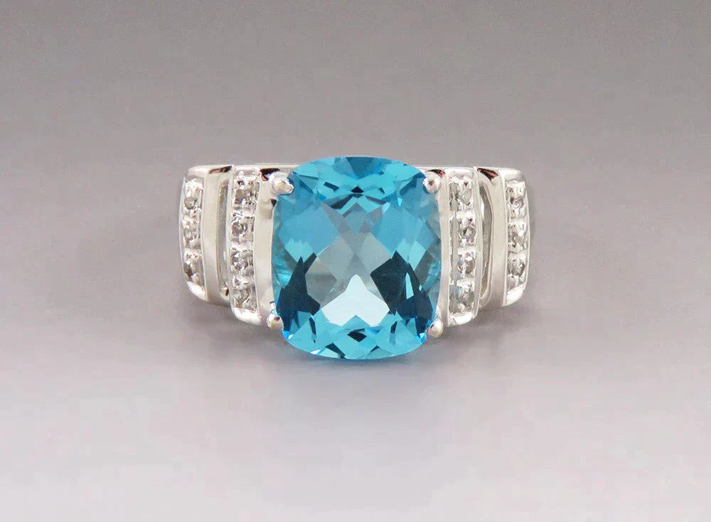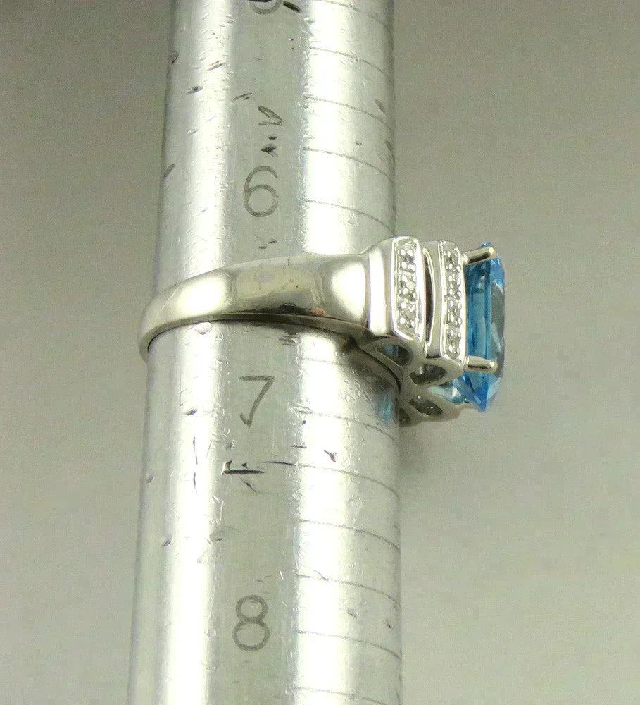 Beautiful 14K White Gold Blue 4.5CT Topaz Diamond Gemstone Statement Ring