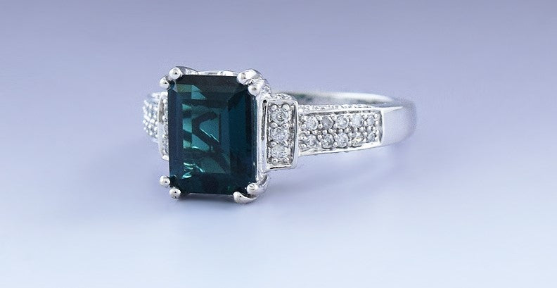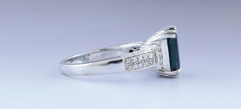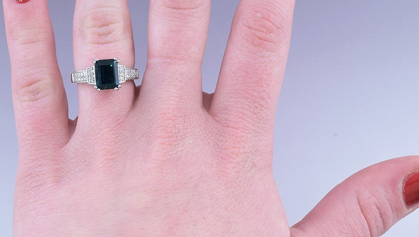 Beautiful 14k White Gold Diamond Lab Created Emerald Ring