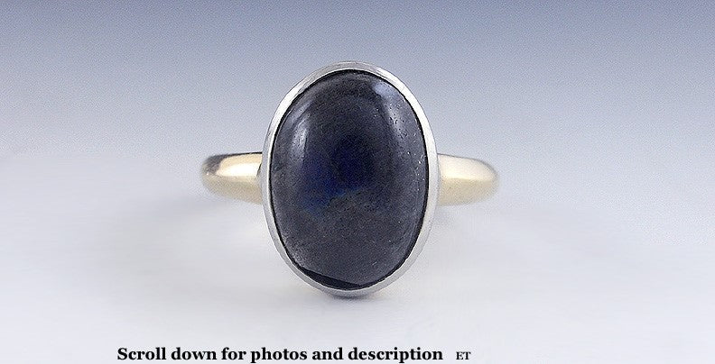 Beautiful 14k Yellow Gold 18k White Gold Blue Labradorite Cabochon Ring