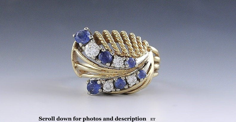 curved rows of alternating sapphires and diamonds, above a sort of basket like