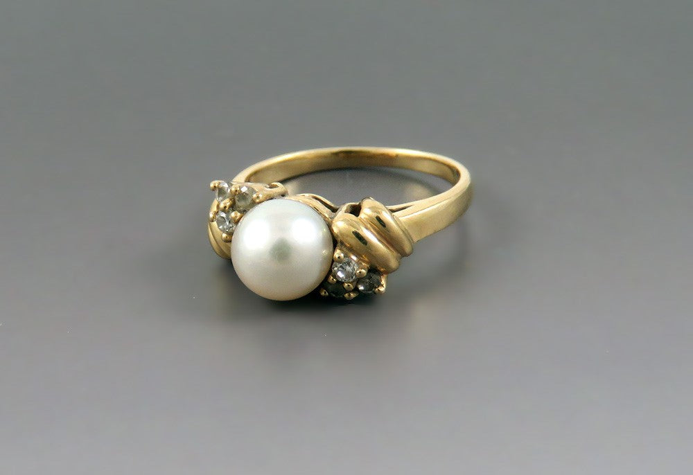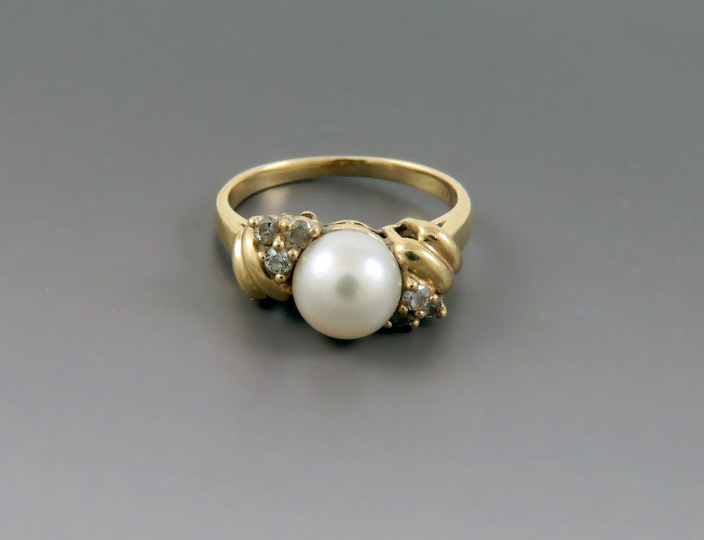 Beautiful 14k Yellow Gold ~6.8mm Pearl Diamond Ring